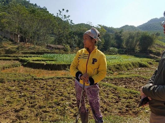 “Gần 2 năm nay, người dân chúng tôi phải chịu cảnh bụi bay mù mịt vào ngày nắng, ngày mưa thì lầy lội. Khổ nhất là các em học sinh đi học, dù mưa hay nắng cũng lấm lem bùn đất, tiềm ẩn nguy cơ bị tai nạn do hoạt động khai thác và xe trọng tải lớn vận chuyển khoáng sản. Dù đã nhiều lần có ý kiến lên chính quyền địa phương, nhưng tình trạng này vẫn không được khắc phục”, bà Hà Thị Săn, người dân xã Thu Ngạc cho biết. Cũng theo bà Săn, ngoài phá nát đường sá, ô nhiễm môi trường, đơn vị khai thác khoáng sản còn lấp mất chiếc ao dùng để trữ nước tưới tiêu cho đồng ruộng, khiến tình trạng thiếu nước xảy ra, năng suất cũng vì thế mà sụt giảm. Đặc biệt, vào những ngày mưa lớn, bùn đất từ bãi thải của đơn vị khai thác còn tràn xuống ruộng của người dân khiến mọi người rất bức xúc. “Con đường dân sinh do các hộ ở xóm Mán, xã Thu Ngạc tự bỏ tiền ra để đào đắp.