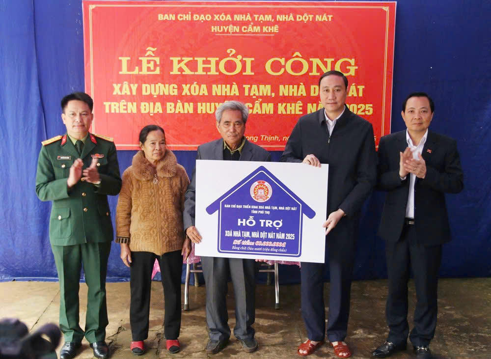 Theo báo cáo của Ủy ban Mặt trận Tổ quốc Việt Nam tỉnh Phú Thọ, những năm qua, công tác xoá nhà tạm, nhà dột nát luôn được tỉnh Phú Thọ đặc biệt quan tâm. Trong năm 2024, Quỹ “Vì người nghèo” trên địa bàn tỉnh đã hỗ trợ 519 hộ gia đình chính sách, hộ có hoàn cảnh khó khăn xóa nhà tạm, nhà dột nát.