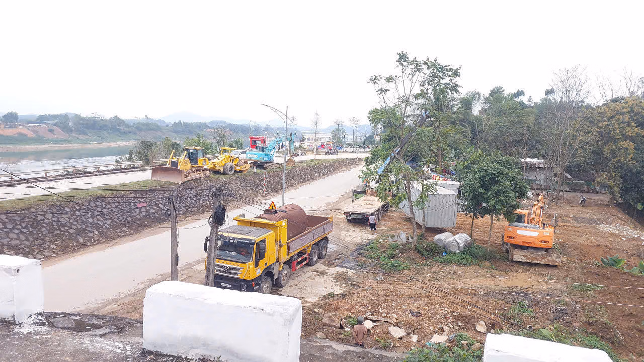 Phú Thọ: Tập kết máy móc chuẩn bị sửa cầu Sông Lô
