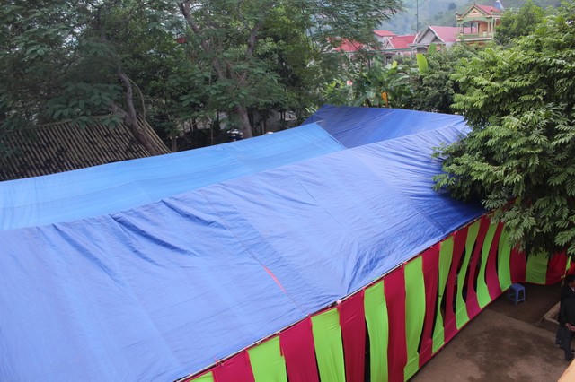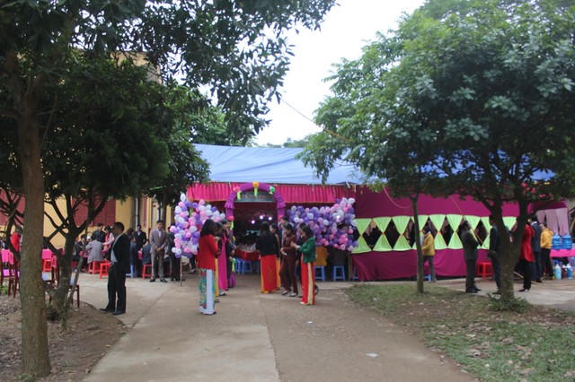 Theo quan sát, trước sân của Trụ sở xã Mỹ Thuận, toàn bộ diện tích trống đã được dựng rạp, cỗ cưới linh đình. Nhiều người dân ở đây cho biết, bắt đầu từ đầu giờ chiều, hàng loạt xe biển xanh, biển trắng dựng dọc tuyến đường 32 trước cổng Trường Tiểu học Mỹ Thuận, UBND xã Mỹ Thuận gây tắc nghẽn giao thông.