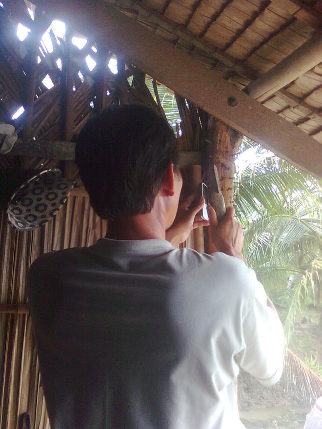 Nghe người con năn nỉ hồi lâu, ông Sáu động lòng thương, gật đầu đồng ý thử giúp. Ông bảo người con trai đặt điện thoại sát vào tai mẹ để cụ nghe rõ tiếng đóng đinh. Ông đóng vừa hết chiếc đinh thì đầu dây bên kia cụ bà kêu đã hết đau.