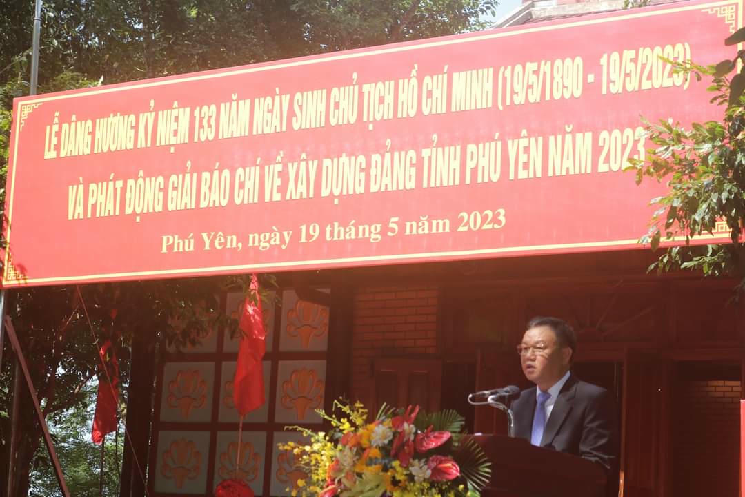 (PLVN) - Sáng 19/5, tại Khu di tích lịch sử Nhà thờ Bác Hồ ( huyện Sơn Hòa), Tỉnh ủy, HĐND, UBND, Ủy ban MTTQ tỉnh Phú Yên tổ chức Lễ dâng hương kỷ niệm 133 năm ngày sinh Chủ tịch Hồ Chí Minh (19/5/1890-19/5/2023) và phát động Giải Báo chí về xây dựng Đảng tỉnh Phú Yên năm 2023.