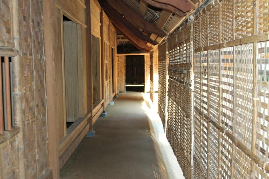 Kết cấu ngôi nhà được phục dựng diện tích 50m2 gồm 3 gian cột gỗ, vách nứa, lợp lá tranh, phía trước mỗi căn nhà đều có rèm tre tránh mưa, nắng hắt vào nhà, nền nhà bằng đất… Mỗi công trình gồm nhà ngang và nhà bếp, bên ngoài căn nhà của cụ Hoàng Xuân Tiệng, 2 căn nhà còn lại có một gian nhà nằm tách biệt dùng để nhốt trâu, bò và chăn nuôi…