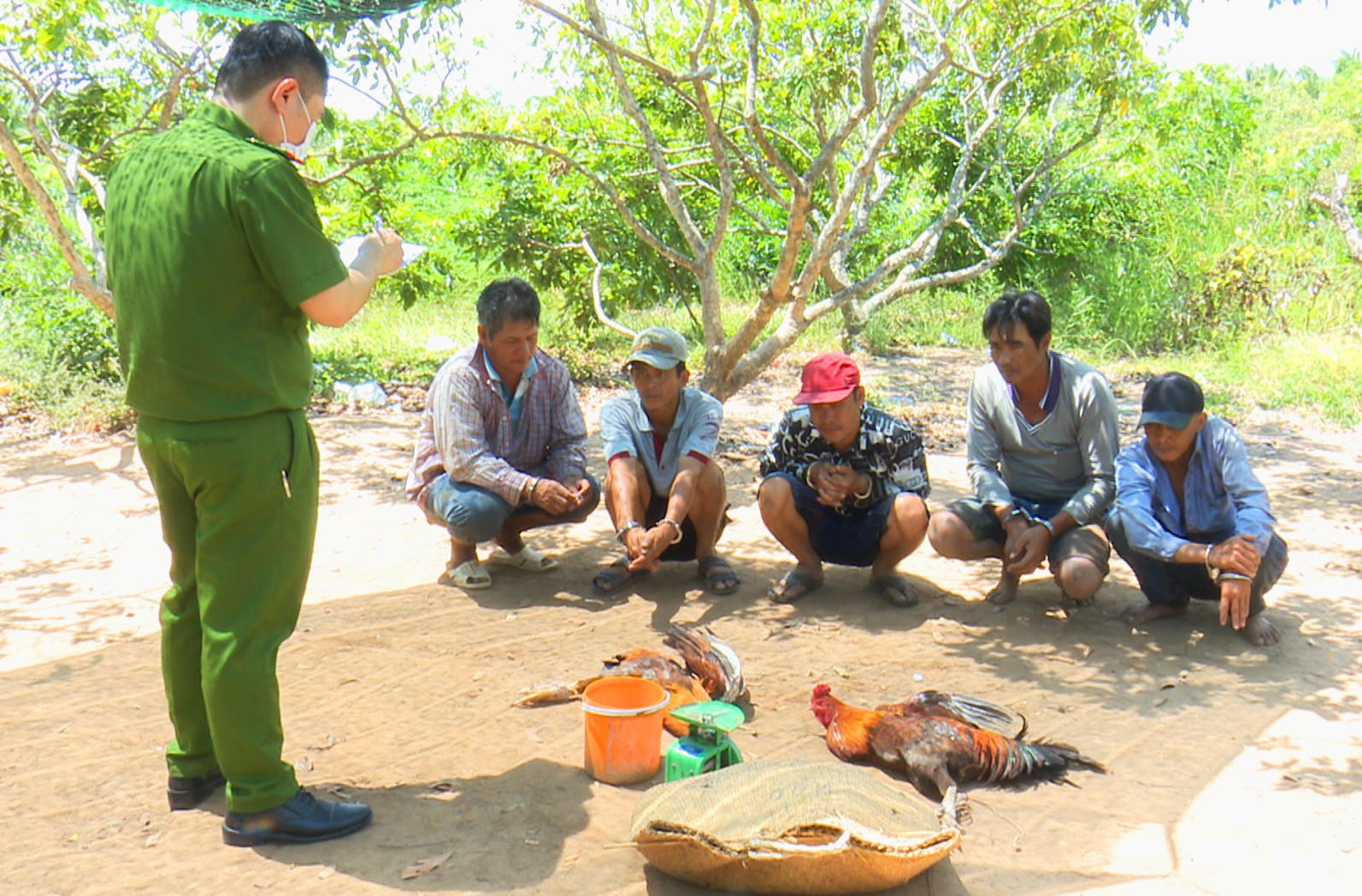 Phục kích bắt 5 đối tượng đá gà ăn tiền tại một khu đất trống