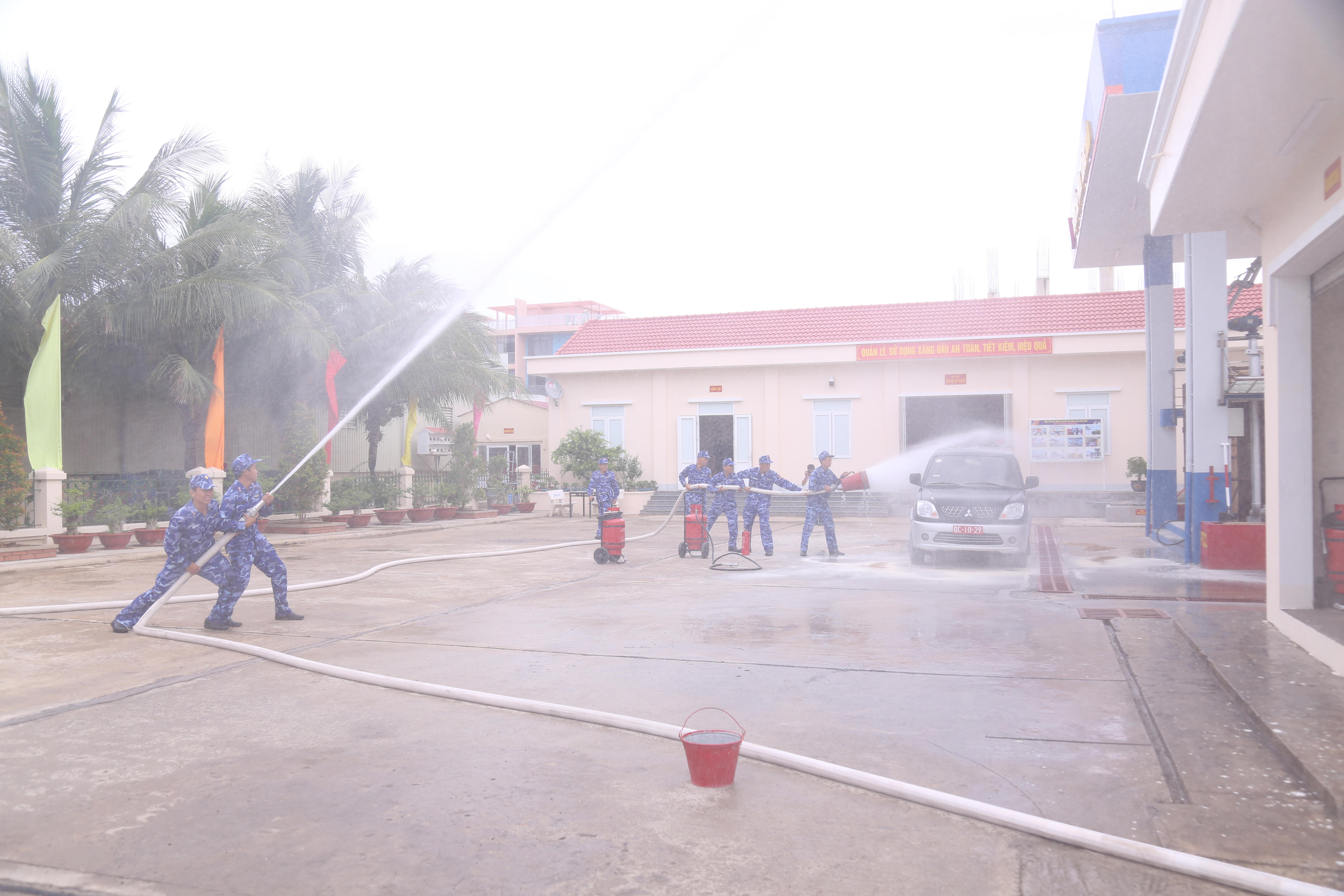 Cán bộ, nhân viên thực hành xử lý tình huống phòng cháy, chữa cháy. |
