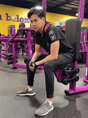 Anh dành thời gian tập gym để nâng cao sức khỏe.