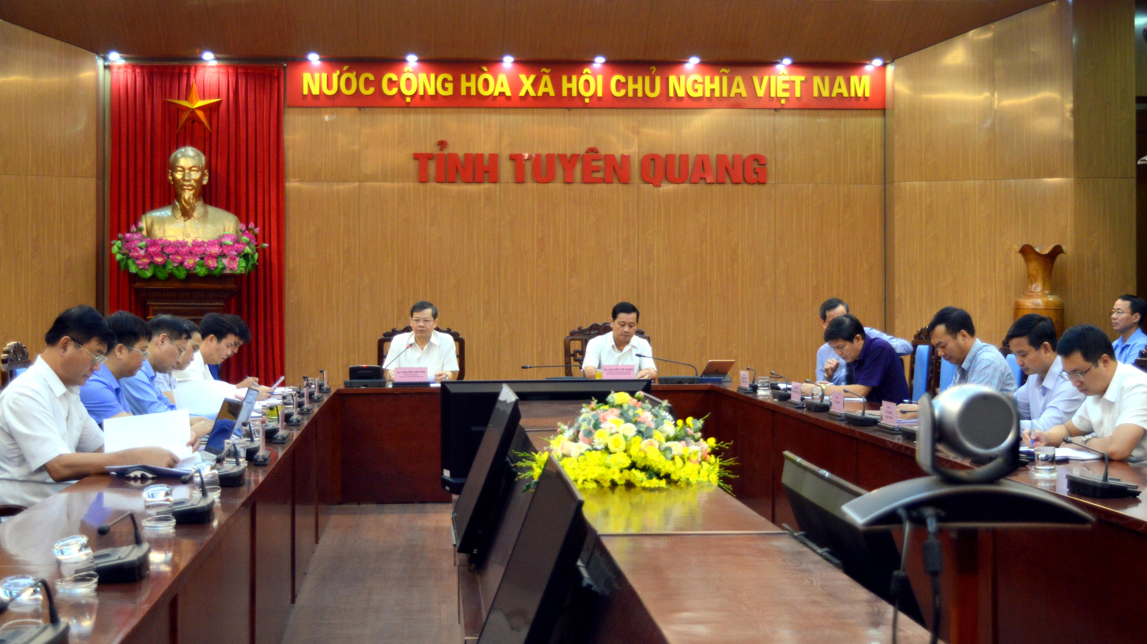 UBND tỉnh Tuyên Quang họp bàn về công tác ổn định dân cư sau bão, lũ. Ảnh: CTV. |