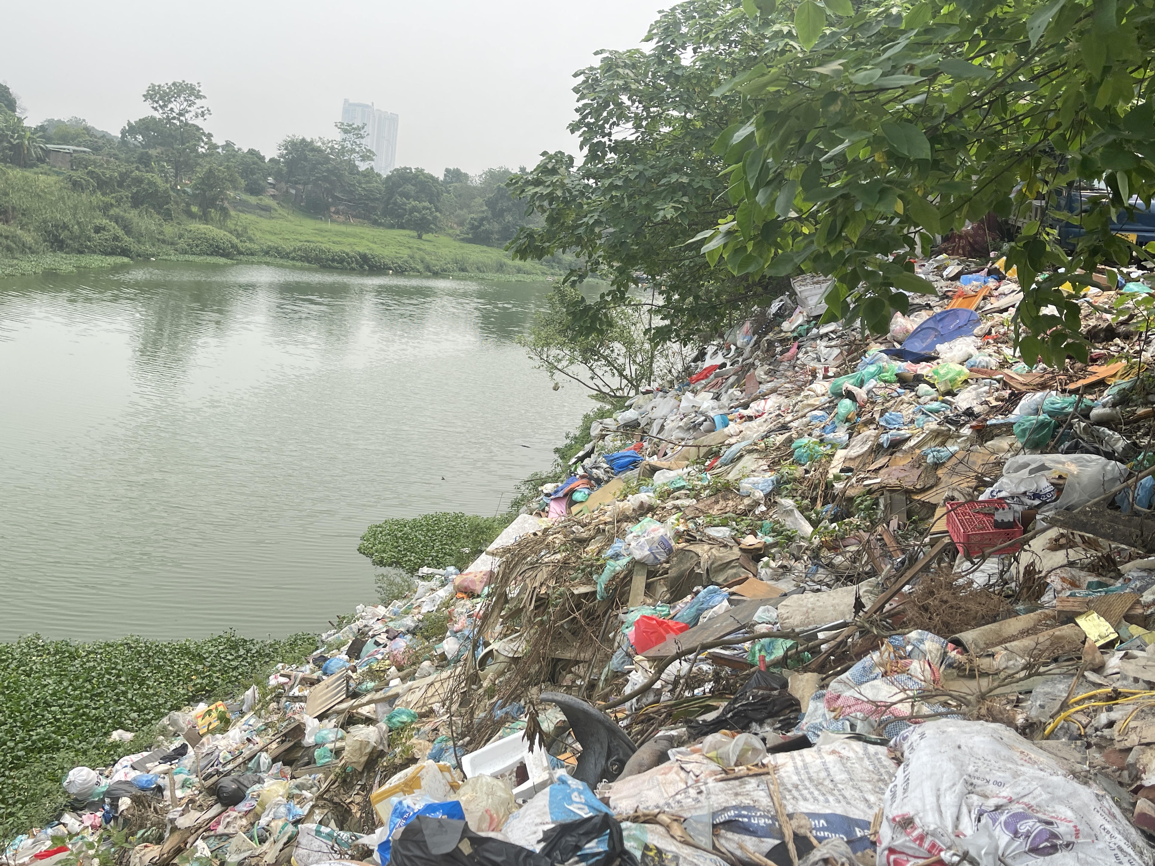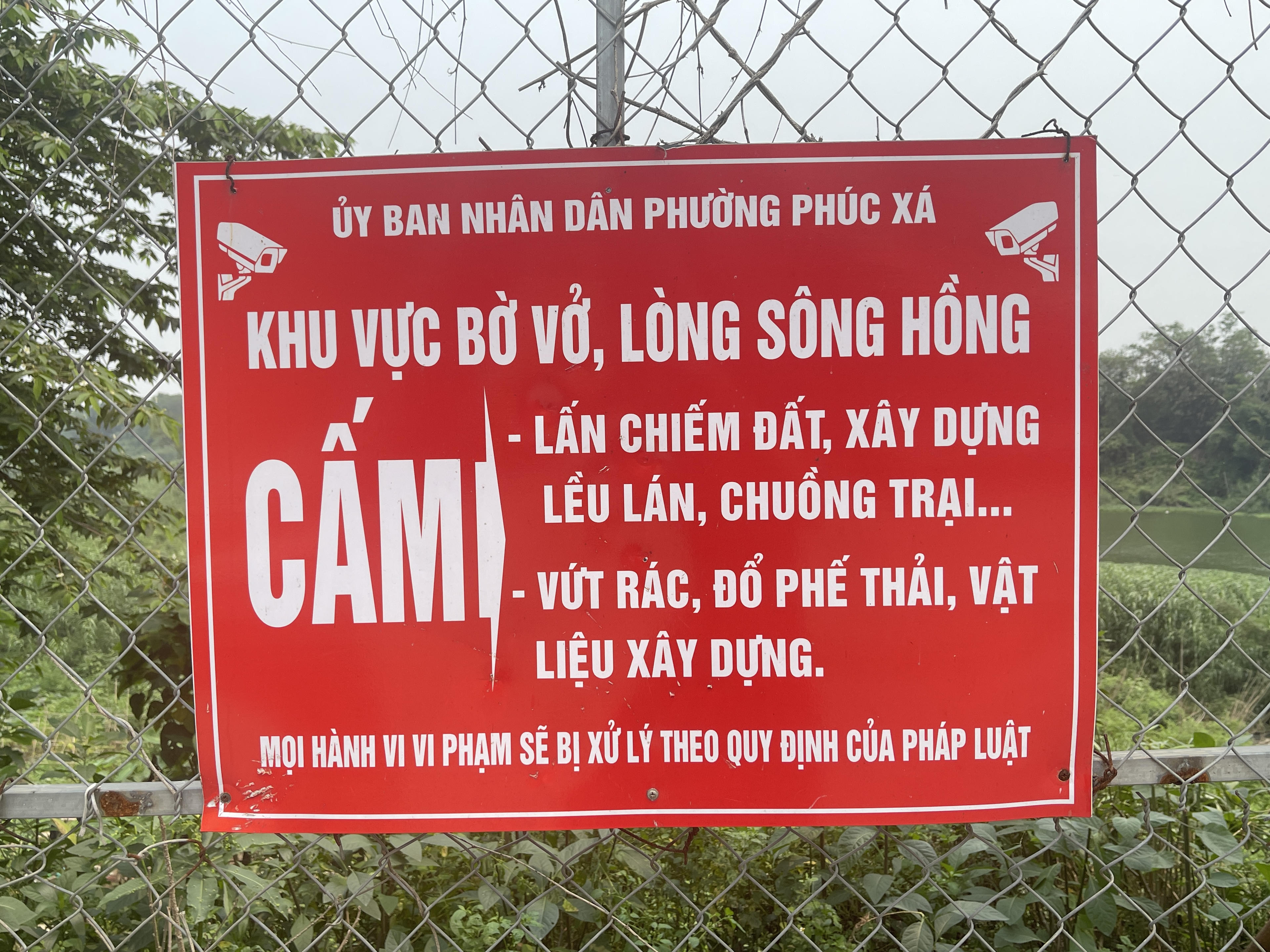 Ghi nhận thực tế trong tháng 3/2026 trên khu vực tuyến đê hữu Hồng (từ Km58+950 đến Km70+250), dù UBND phường Hồng Hà đã ban hành các văn bản chỉ đạo về quản lý đầu tư xây dựng và trật tự xây dựng, cắm biển cấm, tuy nhiên tại một số khu vực vẫn còn tồn tại tình trạng vi phạm, như tại khu vực giáp sông con (nhánh sông Hồng) cuối ngõ 76 An Dương, cuối ngõ 264 Âu Cơ và cuối ngõ 74 Tân Ấp vẫn xuất hiện tình trạng đổ rác thải sinh hoạt, phế thải xây dựng tràn lan ra khu vực bãi sông.