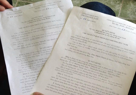Khi yêu cầu được xem Quyết định số 66 mà ông chủ tịch phường đã lấy làm căn cứ để ra quyết định cưỡng chế, chúng tôi đã được cung cấp một văn bản không có hiệu lực pháp lý – không đóng dấu.