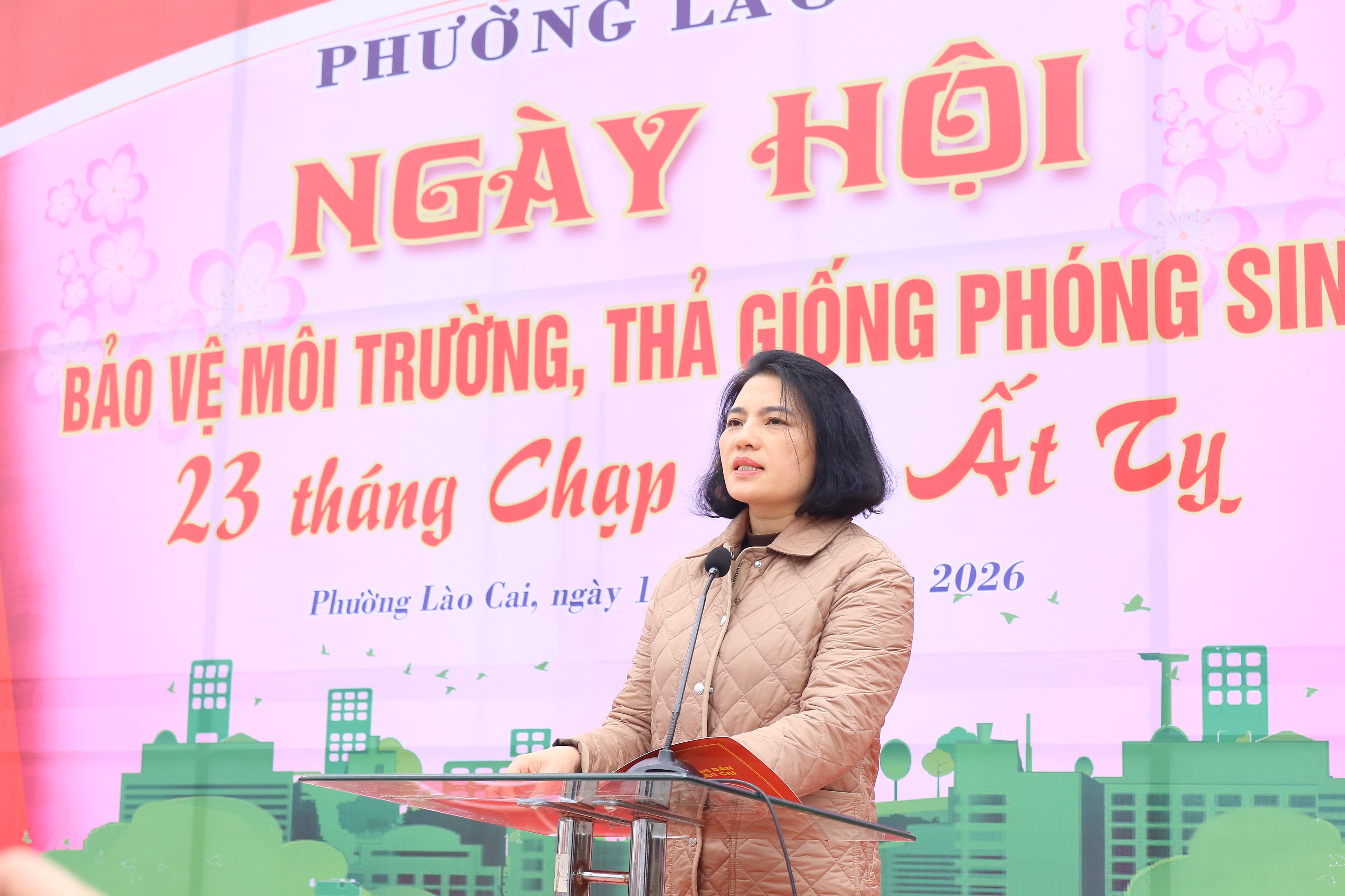 Phát biểu tại sự kiện, bà Trần Thị Thùy Dung - Phó Chủ tịch UBND phường Lào Cai nhấn mạnh, việc gìn giữ phong tục truyền thống cần gắn liền với trách nhiệm bảo vệ môi trường. Mỗi hành động văn minh của người dân sẽ góp phần xây dựng hình ảnh địa phương xanh - sạch - đẹp, hướng tới mục tiêu phát triển bền vững.
