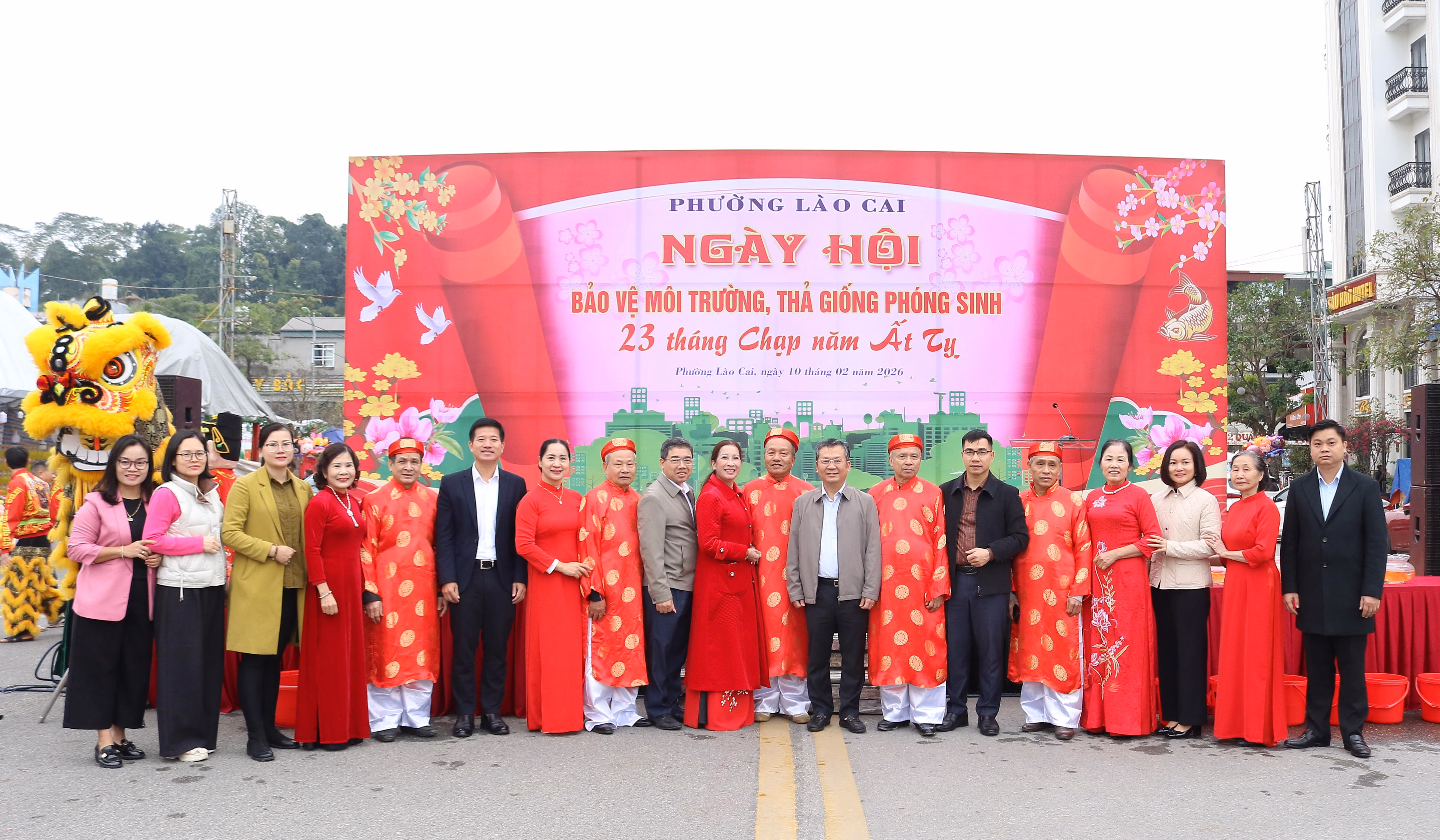 Ngày hội có sự tham dự của lãnh đạo phường Lào Cai, đại diện các sở, ngành, đoàn thể, tổ chức tôn giáo, cùng đông đảo tăng ni, phật tử và nhân dân trên địa bàn, thể hiện sự quan tâm và hưởng ứng mạnh mẽ của cộng đồng đối với hoạt động bảo vệ môi trường và gìn giữ phong tục truyền thống.