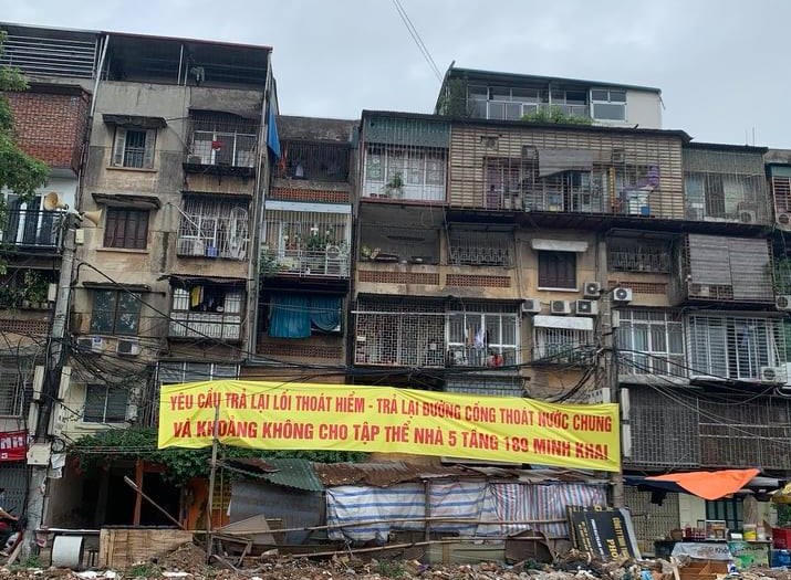 Cực chẳng đã, các hộ dân đã buộc phải căng băng rôn, biểu ngữ yêu cầu trả lại lối thoát hiểm, đường cống thoát nước và khoảng không cho tòa nhà 189 Minh Khai. Nhận thấy tình hình căng thẳng, chính quyền địa phương đã ngay lập tức có mặt để vận động và khuyên bà con không căng băng rôn, biểu ngữ nhằm tránh gây mất an ninh trật tự trong khu vực. Người dân sau đó đã đề nghị các cấp chính quyền có biện pháp can thiệp đối với công trình xây dựng trên và đổi lại sẽ chấp nhận lời đề nghị của tổ công tác.