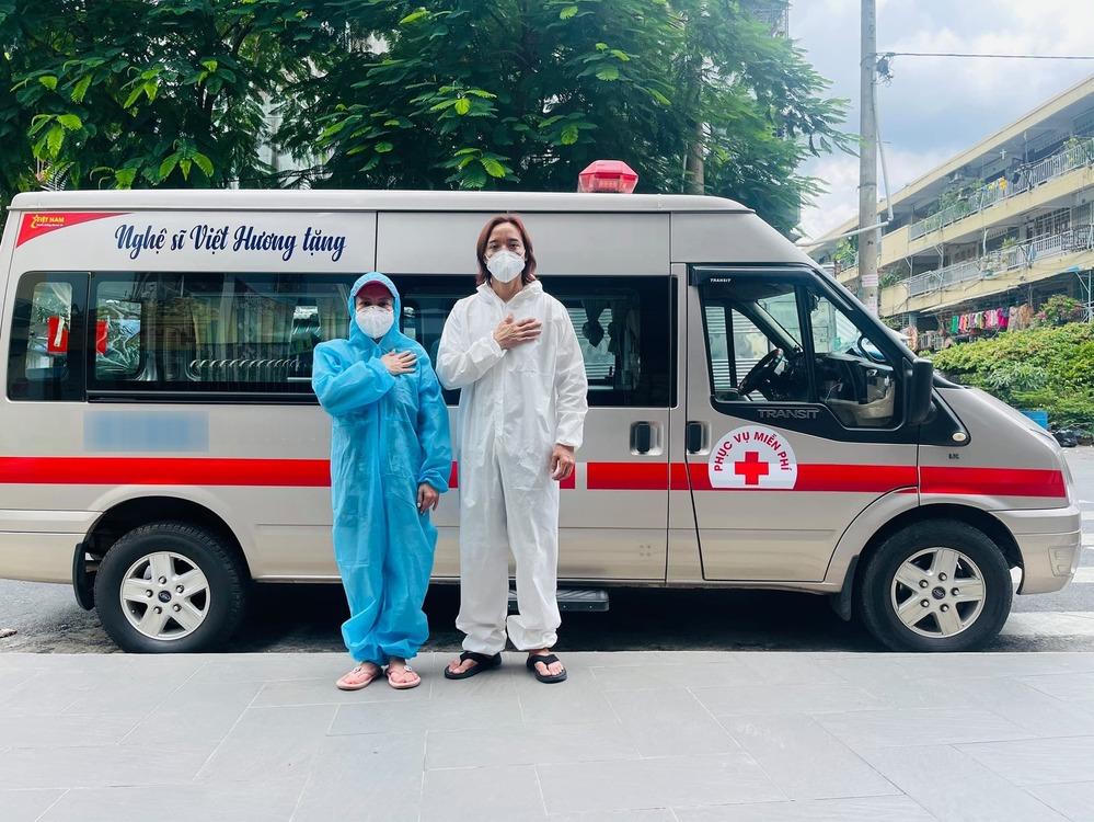 Trên trang cá nhân ngày 3/9, Việt Hương đăng tải loạt ảnh với chiếc xe cứu thương vừa mua. Nữ danh hài cho biết phương tiện này sẽ được chuyển về Mặt trận Tổ quốc quận 10 để hoạt động trong các tình huống cấp cứu, giao bình oxy, cồn sát khuẩn và các thiết bị y tế. Đáng chú ý, Việt Hương tiết lộ, Hoài Tâm đã gửi tặng mình 192 triệu đồng.
