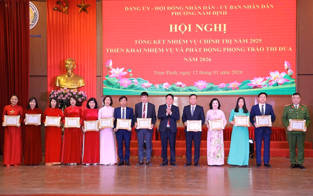 Ngày 12/1, Đảng ủy, HĐND và UBND phường Nam Định (Ninh Bình) đã tổ chức hội nghị tổng kết hoạt động năm 2025, đồng thời triển khai các nhiệm vụ và phát động phong trào thi đua cho năm 2026.