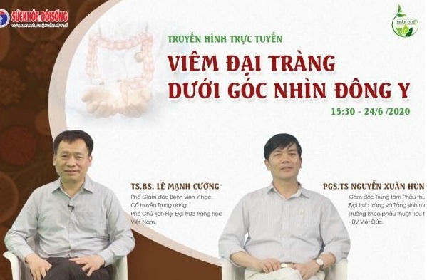 (PLVN) - Tư vấn trực tuyến “Viêm đại tràng dưới góc nhìn đông y” với sự tham gia của PGS.TS Nguyễn Xuân Hùng (GĐ Trung tâm Phẫu thuật Đại trực tràng &Tầng sinh môn) và TS. BS Lê Mạnh Cường (PCT Hội hậu môn trực tràng học Việt Nam) do nhãn hàng Đại Tràng Trần Quý đã đồng hành cùng Báo điện tử Sức khỏe&Đời sống – cơ quan ngôn luận của Bộ y tế vừa tổ chức tại Hà Nội. Chương trình đã thu hút hàng trăm nghìn người tham gia và đặt câu hỏi tới các chuyên gia của chương trình.