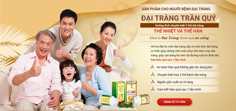 Đại Tràng Trần Quý là sản phẩm đầu tiên tại Việt Nam giúp hỗ trợ điều trị bệnh viêm đại tràng chuyên biệt hướng đích cho 2 thể bệnh là “thể hàn và thể nhiệt”. Sản phẩm là kết tính của 2 bài thuốc y học cổ truyền “Hương sa lục quân” và “Tứ quân tử thang” được gia giảm theo bí quyết nghìn đời của cụ Trần Quý. Đại Tràng Trần Quý giúp có tác dụng.