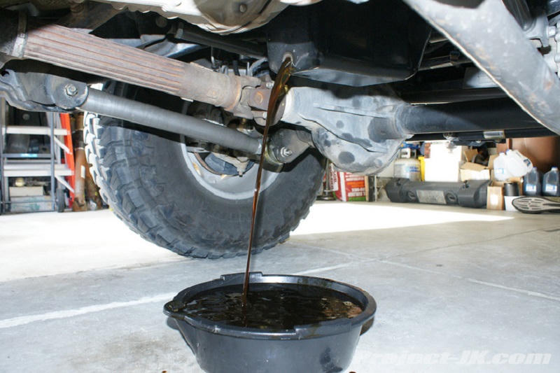 Đầu tiên bạn cần phải đẩy xe lên chỗ ráo nước, tiến hành tháo nắp đậy dầu trong khoang máy để tạo lỗ thông hơi, sau đó mở ốc xả dầu dưới gầm xe để nước theo dầu trôi hết ra ngoài.