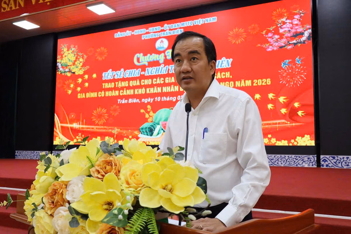 Phát biểu tại chương trình, ông Nguyễn Duy Tân, Phó Bí thư Đảng ủy - Chủ tịch UBND phường Trấn Biên nhấn mạnh: Với mục tiêu xuyên suốt “Không để ai bị bỏ lại phía sau”, Đảng bộ, chính quyền phường luôn xác định công tác chăm lo đời sống nhân dân là nhiệm vụ trọng tâm, thường xuyên. Bằng nhiều hình thức đa dạng, thiết thực, địa phương đã và đang triển khai các hoạt động hỗ trợ, giúp đỡ người dân, nhất là các gia đình chính sách, người có công, thương binh, bệnh binh và các hộ có hoàn cảnh khó khăn.