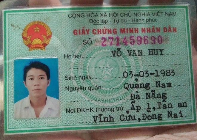 Tìm đến nhà cha mẹ Huy ở ấp 1 (xã Tân An, huyện Vĩnh Cửu), bà Lê Thị Sen (SN 1953, mẹ Huy) chỉ biết khóc khi kể về người con vừa vướng vào lao lý. Gia đình làm nông nghèo, có 5 anh em. Hai mươi tuổi, Huy lấy vợ cùng huyện, sinh được hai con gái. Bản thân ốm yếu chỉ nặng 38kg, Huy được cha xin vào làm ở một xưởng gỗ của người quen với mức lương khoảng 7 triệu đồng/tháng.