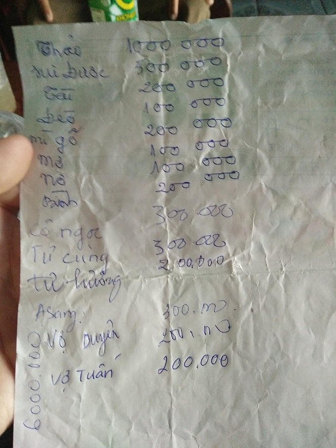 “Có mấy người đội mưa đến cho tiền. Mấy ngày nay được vài triệu đồng, tôi để dành đây để mua sữa cho vợ con nó mới sinh và thăm nuôi nó ở trại. Chứ vợ chồng tôi già rồi, làm mấy sào ruộng, không có tiền”, mẹ Huy chia sẻ.