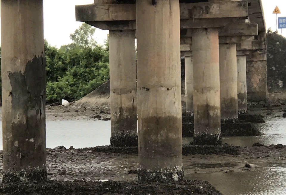 Mặc dù đơn vị quản lý đã sữa chữa, bảo trì, nhưng do bị nước mặn xâm thực nên tình trạng hư hỏng tại các trụ cầu có dấu hiệu tiếp tục phát triển, mở rộng.