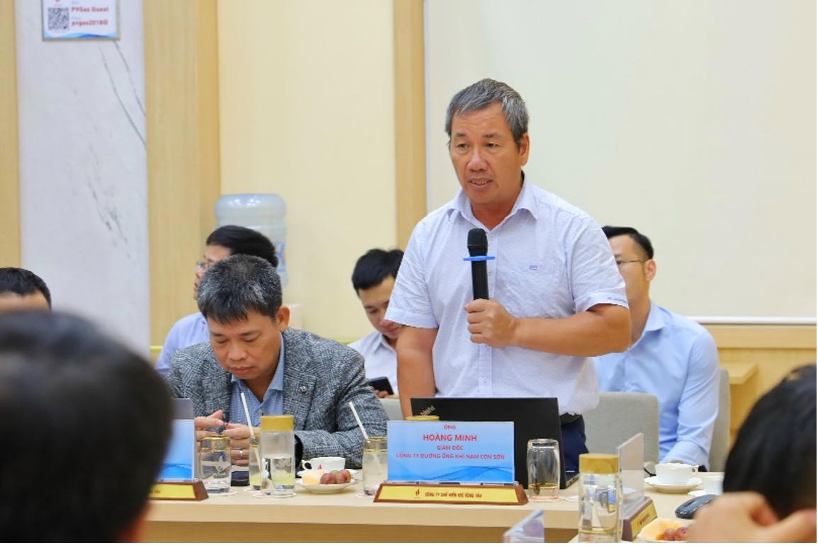 Ông Hoàng Minh - Giám đốc Công ty Đường ống khí Nam Côn Sơn đóng góp ý kiến tại cuộc họp. |