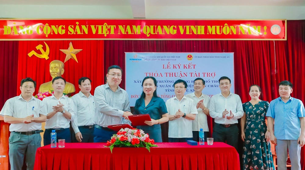 Ngày 02/7/2024, tại trường Trung học phổ thông (THPT) Nguyễn Xuân Ôn, PV GAS đã phối hợp với Ủy ban nhân dân (UBND) tỉnh Nghệ An tổ chức Lễ ký kết Thỏa thuận tài trợ xây dựng khối nhà học 3 tầng với 30 phòng học.