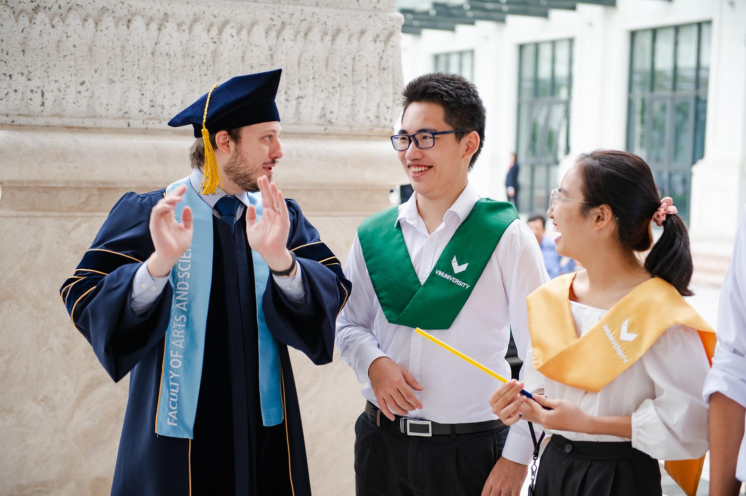 Hơn nữa, VinUni có quỹ và có chính sách để tạo cơ hội cho sinh viên làm trợ giảng và làm trợ lý nghiên cứu cho các giáo sư của trường. Đặc biệt, chuẩn tối đa của QS Stars yêu cầu 70% giảng viên phải được đào tạo, tuy nhiên VinUni đã vượt xa chuẩn này bởi chính sách yêu cầu 100% giảng viên tham gia chương trình đào tạo về phương pháp giảng dạy tích cực, do Cornell xây dựng và chứng nhận.