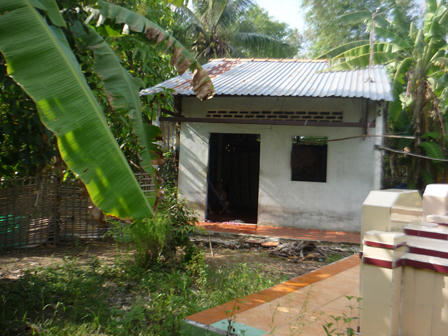 Băng qua đoạn sân ngập nước, đầy cỏ dại, khách bước vào căn nhà nhỏ ở ấp Đông Thạnh, xã Đông Thuận, huyện Thới Lai, TP Cần Thơ. Đây là nơi sống của cha mẹ Nhờ, bảo mẫu nhẫn tâm trong vụ án hành hung đến chết cháu bé mới 18 tháng tuổi vừa xảy ra tại TP.HCM.