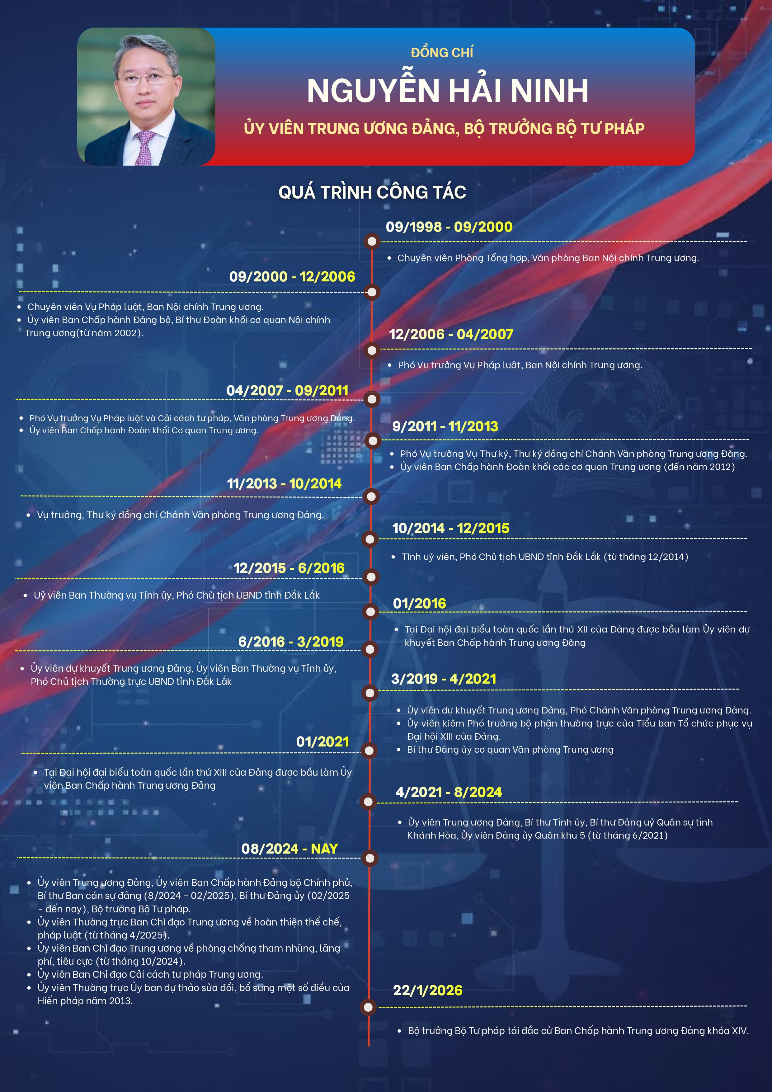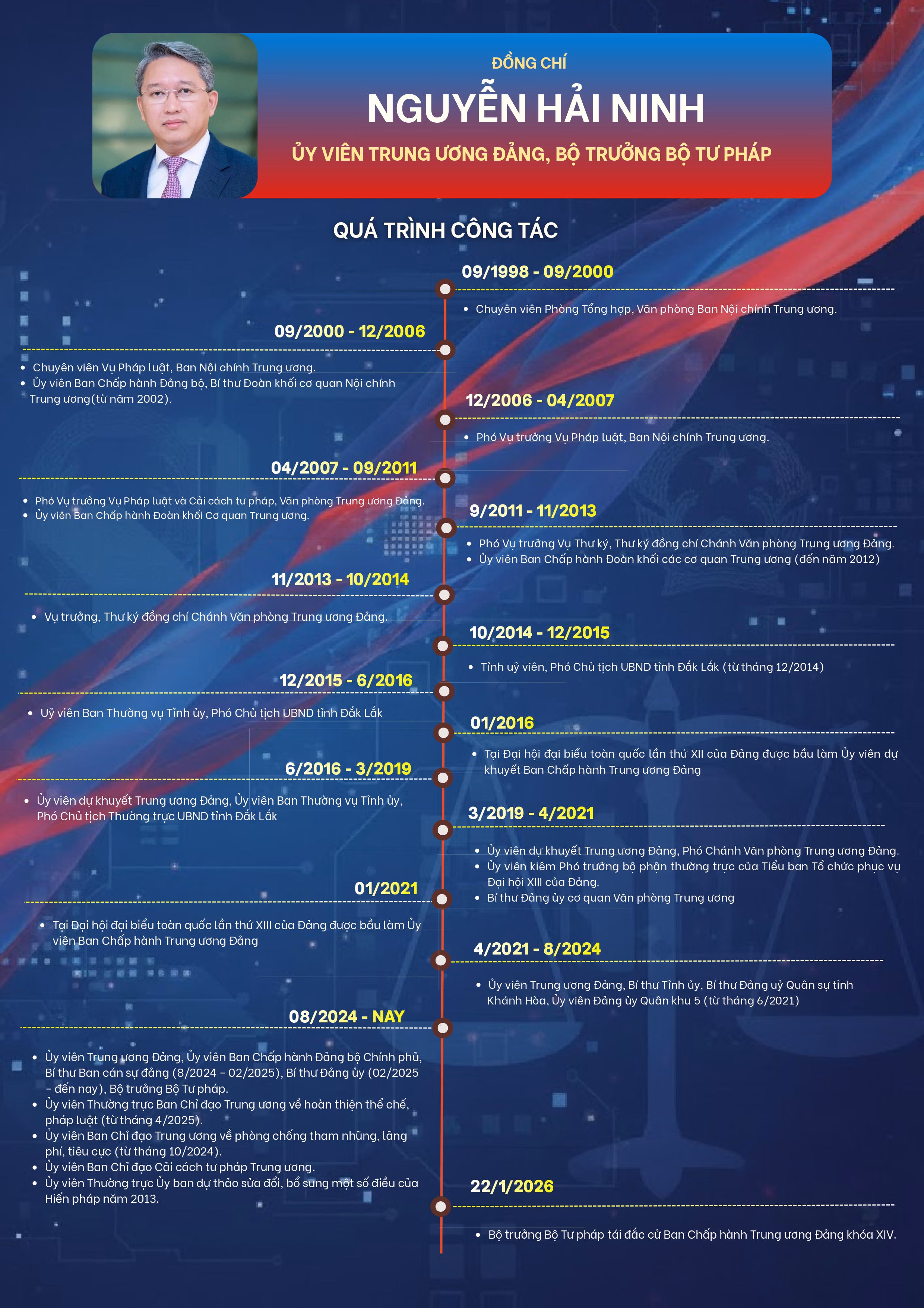 Quá trình công tác của đồng chí Nguyễn Hải Ninh - Ủy viên Ban Chấp hành Trung ương Đảng khóa XIV, Bộ trưởng Bộ Tư pháp