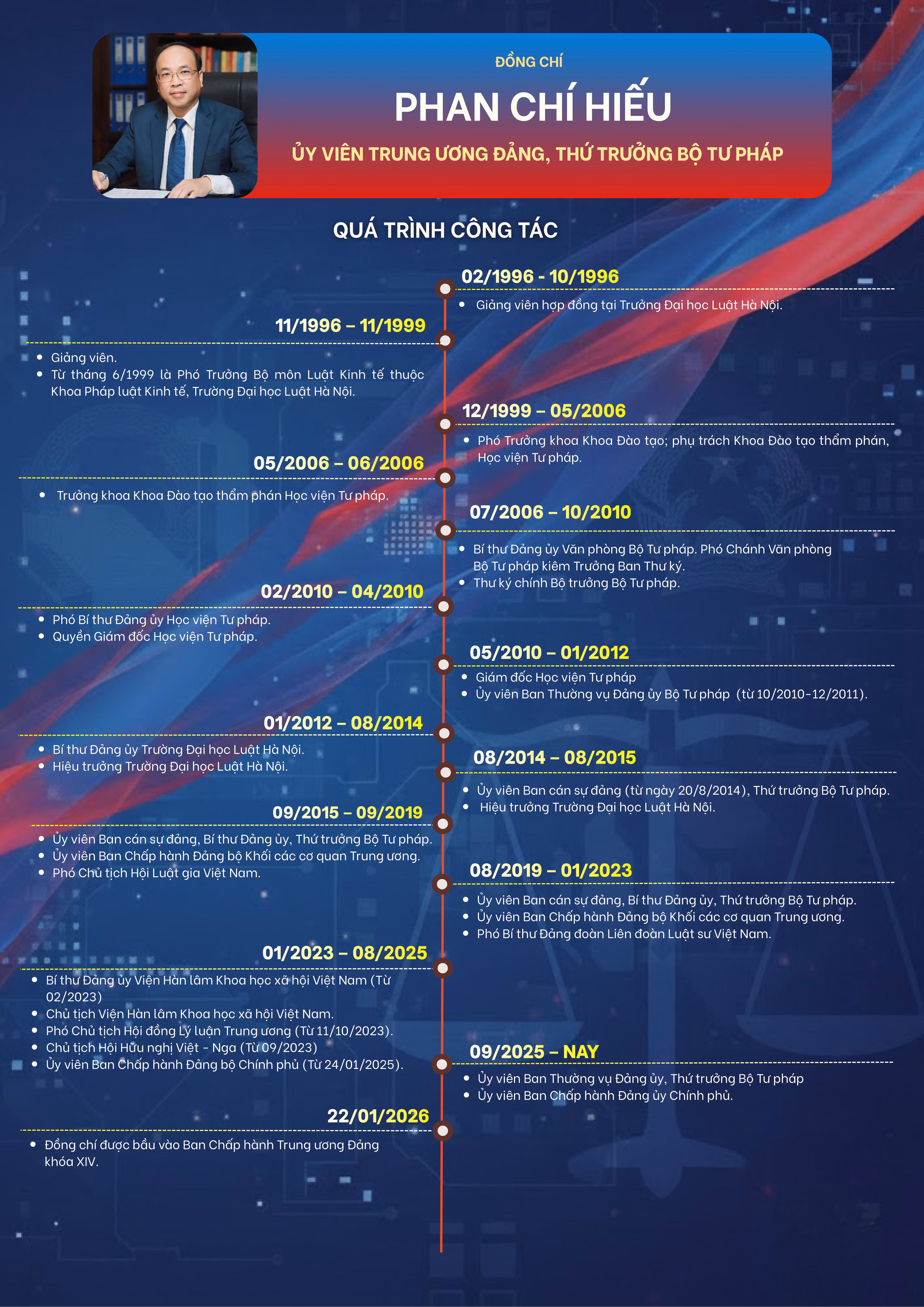 Quá trình công tác của đồng chí Phan Chí Hiếu, Ủy viên Ban Chấp hành Trung ương Đảng, Thứ trưởng Bộ Tư pháp