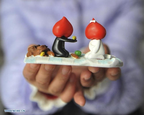 Món đồ trang trí của một cặp tình nhân được trưng bày ở tỉnh Chiết Giang miền đông Trung Quốc. Ảnh: Xinhua