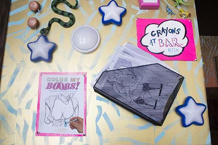 Quán bar chọn màu hồng là tông màu chủ đạo. Dù với trang hoàng với chủ đề khá nhạy cảm, nhưng với sự sắp đặt tinh tế, khi bước chân vào quán, du khách không có cảm giác mình đang bước vào "thế giới khiêu dâm". Từ đèn treo tường hình "núi đôi", thảm lót sàn, miếng dán cửa cho tới các bức tranh trang trí đều rất độc đáo.