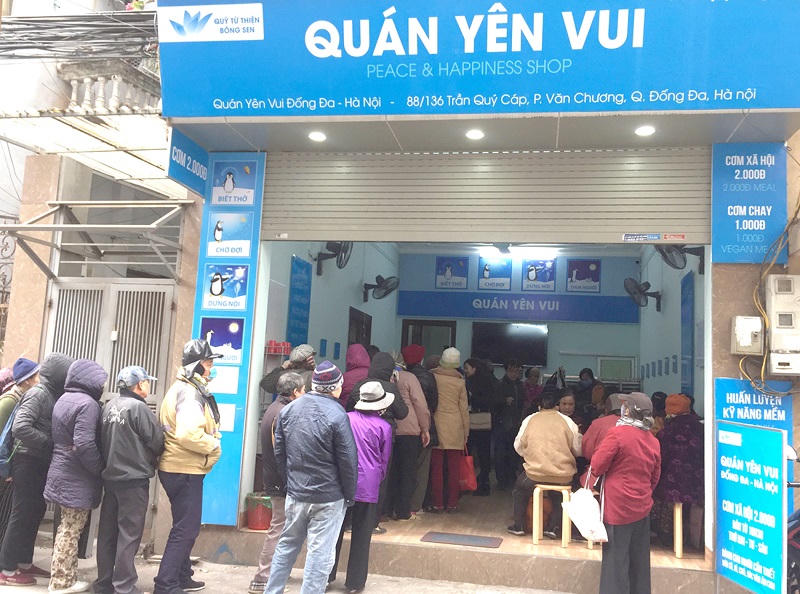 Quán cơm 2 nghìn đã được nhiều người dân nghèo quanh khu vực quận Đống Đa, Hà Nội truyền tai nhau từ những ngày đầu tháng 12/2020. Quán cơm đặc biệt chỉ 2 nghìn đồng/suất với tên gọi nghe thật thân thương Quán Yên Vui, tại địa chỉ số 136 ngõ 88 phố Trần Quý Cáp đã mang đến không biết bao bữa ăn ngon cho người dân nghèo, người vô gia cư và các trường hợp khó khăn.
