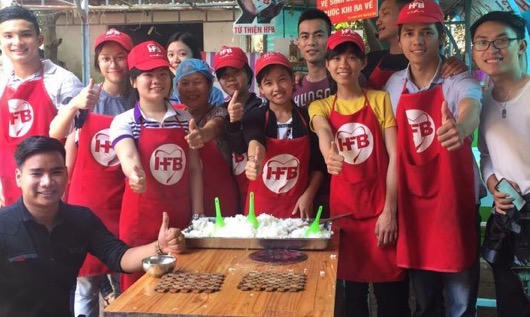 Anh Ngô Qúy Nho-Chủ nhiệm Hội từ thiện HFB (đứng thứ hai từ phải sang) cùng với các tình nguyện viên trong Hội |