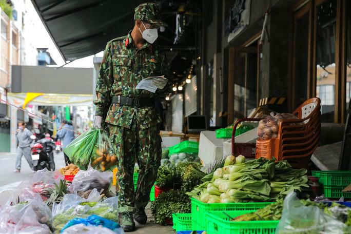 Từ 4 giờ sáng, các cán bộ, chiến sĩ đã tất bật tổng hợp đơn hàng từ khu phố gửi lên rồi đi chợ, phân chia thực phẩm để kịp trao đến tận tay bà con. Đa số các hộ dân trên địa bàn phường đều nằm ở các con hẻm nhỏ nên việc vận chuyển các gói hàng vào rất khó khăn, các chiến sỹ và cán bộ địa phương phải chất từng phần quà lên xe máy để đưa tới các khu phố. Có những con hẻm nhỏ chỉ đủ một người qua, các chiến sỹ phải xuống đi bộ, khuân theo quà, tới từng nhà trao cho người dân.
