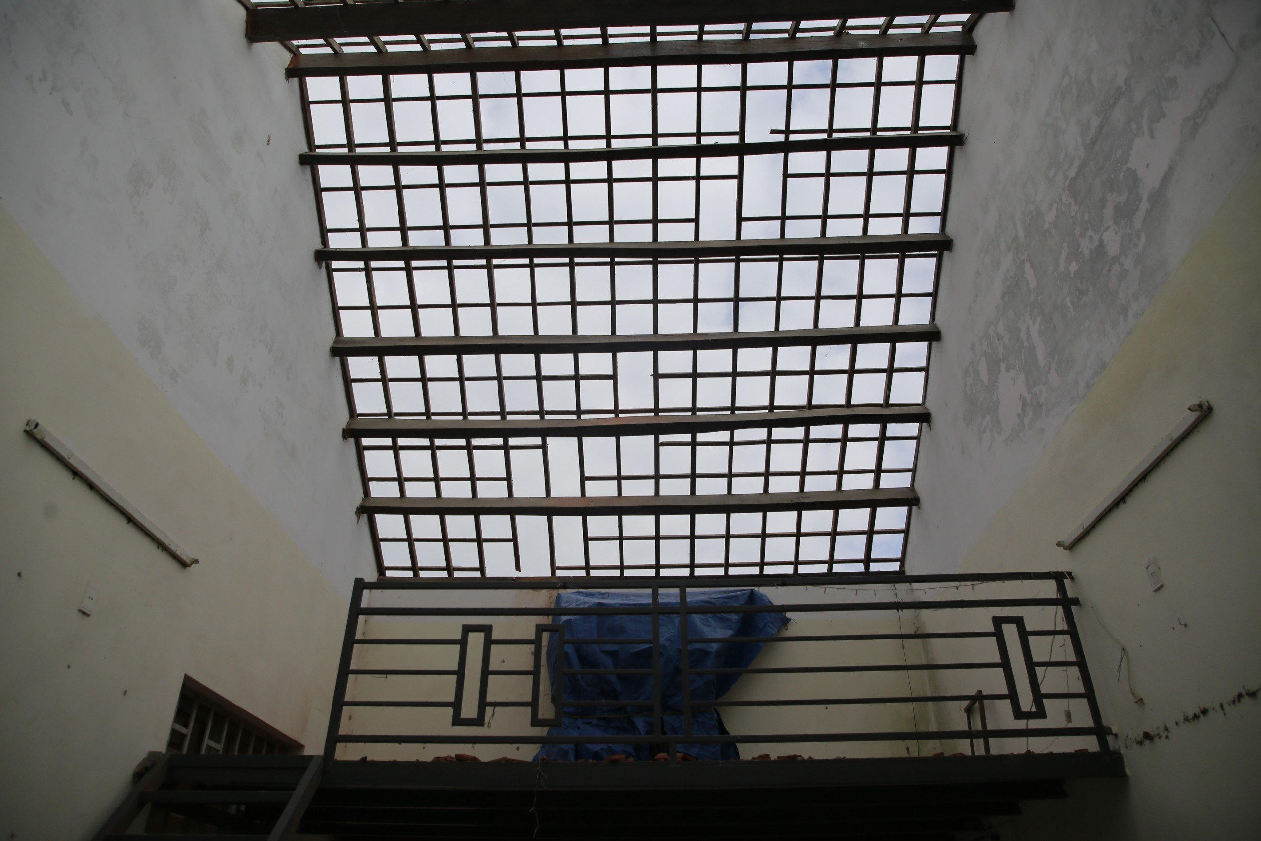 Tại nhà của bà Nguyễn Thị Hiền (52 tuổi), các chiến sĩ của Sư đoàn 372 tiến hành tháo dỡ toàn bộ mái tôn để lợp tôn mới.