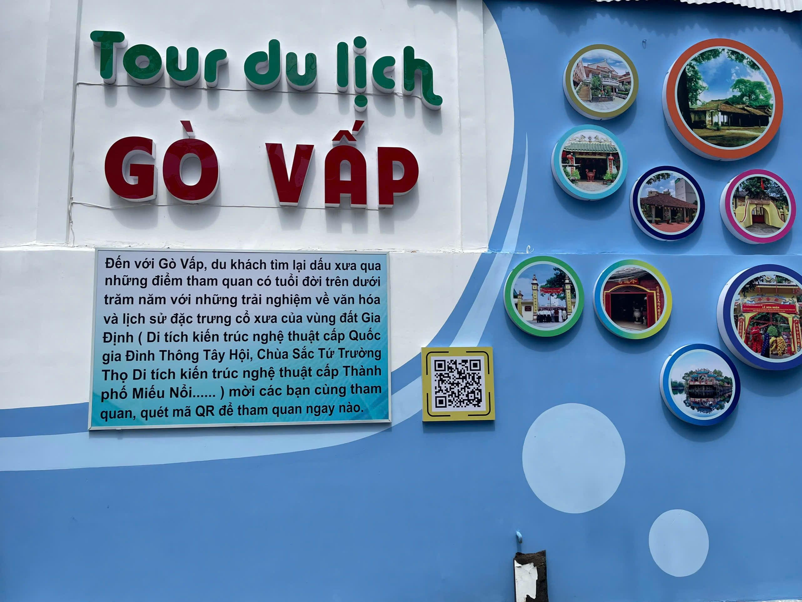 Đặc biệt, “Hẻm 730 Lê Đức Thọ - Tuyến đường chỉ dẫn văn hóa - chuyển đổi số” được vẽ bích họa với diện tích 600m2. Người dân có thể thưởng ngoạn “Tour du lịch Gò Vấp” bằng cách quét mã QR và chụp hình lưu niệm với các tranh vẽ bích hoạ các Di tích kiến trúc nghệ thuật cấp Quốc gia như Đình Thông Tây Hội, Chùa Sắc Tứ Trường Thọ, Miếu Nổi...
