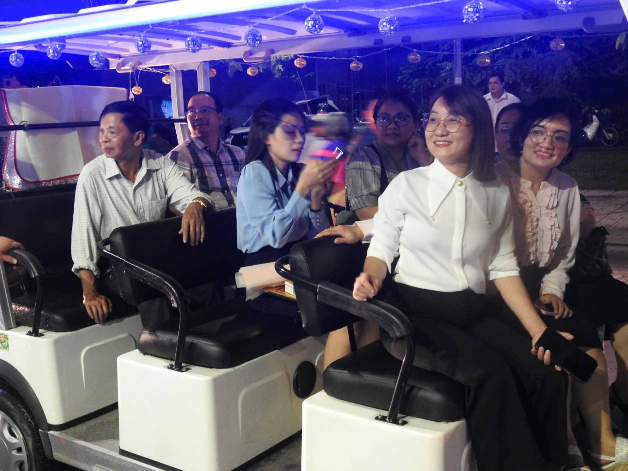 Trải nghiệm xe điện thưởng thức tranh tường tại Tuyến hẻm chỉ dẫn văn hóa - du lịch. (Ảnh: Bùi Yên) |