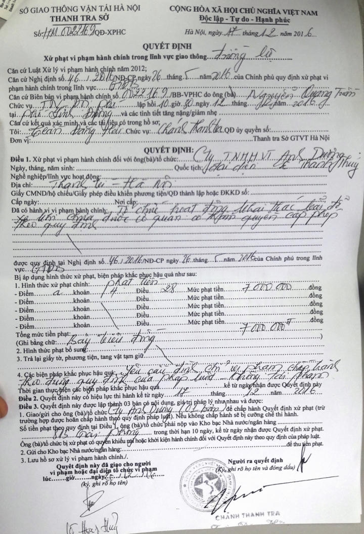 Đến tháng 12/2016, Đội Thanh tra giao thông vận tải quận Hoàng Mai đã tiến hành xử phạt Công ty Ánh Dương (có treo biển Công ty Ánh Dương tại bãi trông giữ xe trên) về hành vi “Tổ chức khai thác bãi đỗ xe khi chưa được cơ quan có thẩm quyền cấp phép theo quy định”. Mức xử phạt là 7.000.000 đồng và yêu cầu đình chỉ vi phạm, chấp hành theo đúng quy định của pháp luật, không tái phạm.