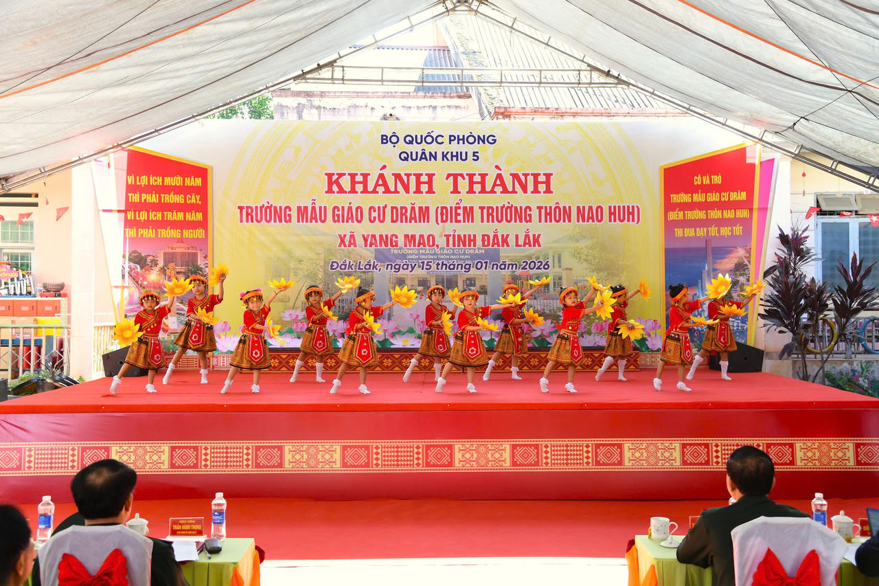 Ngày 15/1, tại thôn Nao Huh (xã Yang Mao, tỉnh Đắk Lắk), Quân khu 5 phối hợp với cấp ủy, chính quyền địa phương tổ chức khánh thành và bàn giao Trường Mẫu giáo Cư Drăm, điểm trường được xây dựng từ nguồn Quỹ “Vì người nghèo” của Bộ Quốc phòng.
