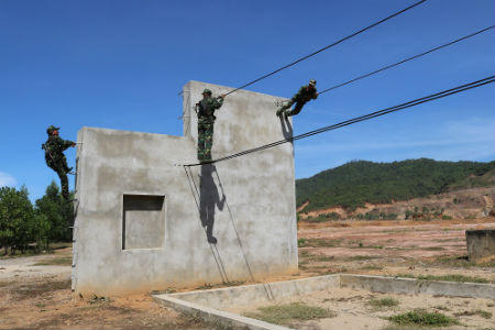 Trời về trưa nắng như đổ lửa. Trên sân thượng tòa nhà 5 tầng hun hút gió nhưng các chiến sĩ vẫn băng băng luyện tập. Sau khẩu lệnh của người chỉ huy, họ bám dây tung mình vào khoảng không, nhanh chóng tiếp cận và tiêu diệt mục tiêu, giải thoát con tin.