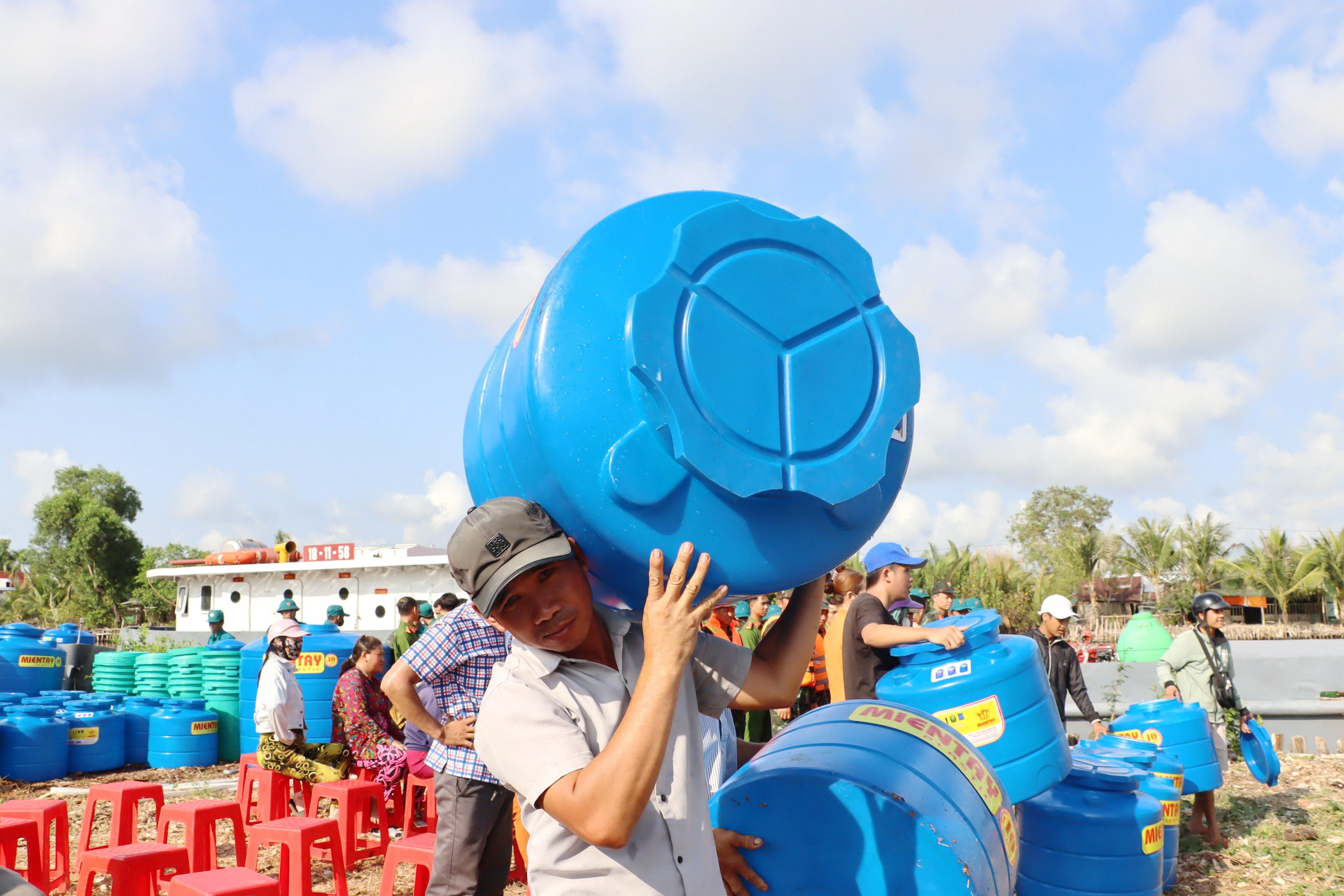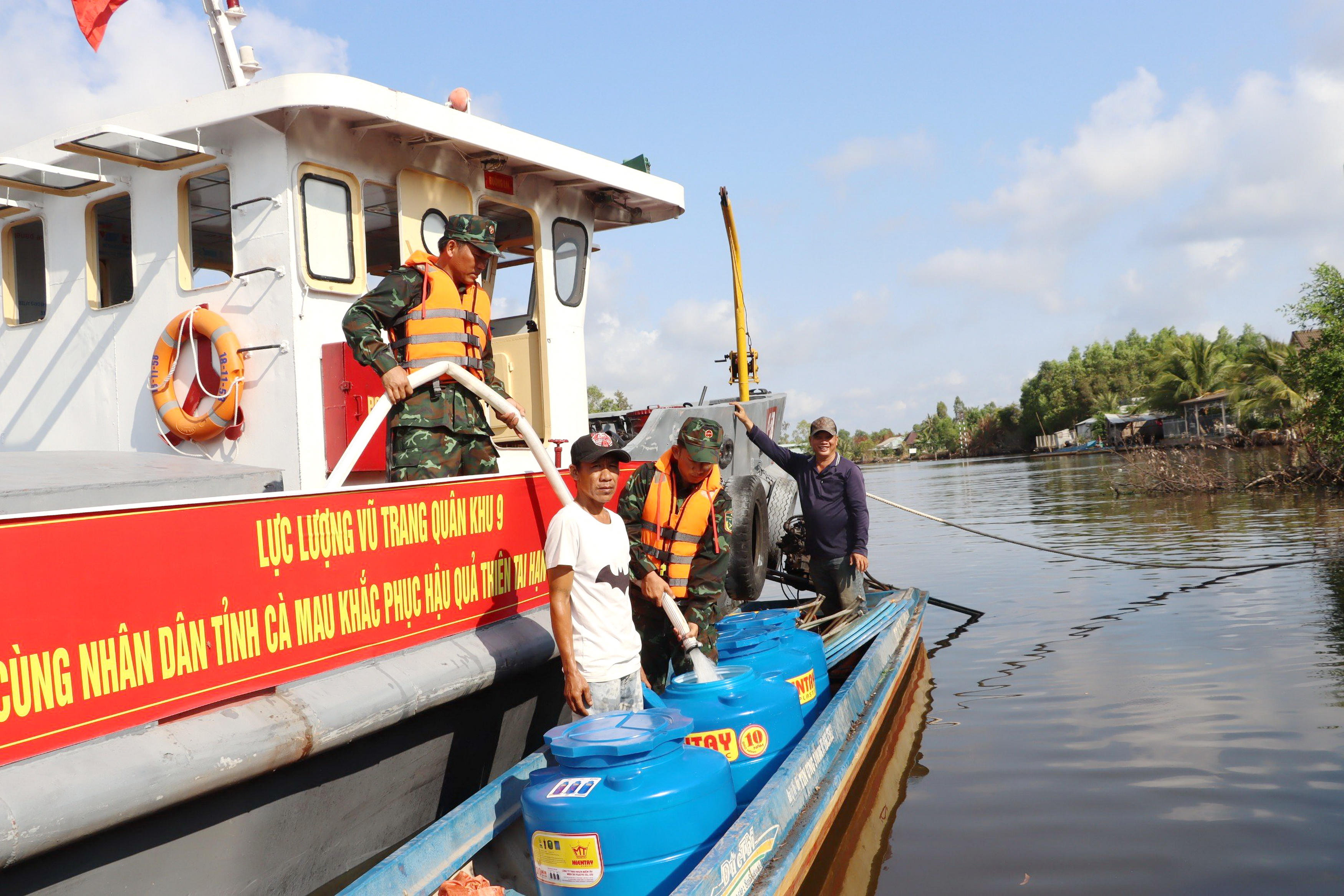 “Thực hiện chỉ đạo của Thường vụ Đảng ủy - Bộ Tư lệnh Quân khu 9, Cục Hậu cần đã dùng 3 tàu vận chuyển khoảng 1.700m3 nước sạch cung cấp miễn phí cho người dân tại các huyện của tỉnh Cà Mau như: Thới Bình, Trần Văn Thời và U Minh. Bên cạnh đó, đơn vị còn tặng các dụng cụ trữ nước cho người dân khó khăn. Dự kiến sẽ cấp nước tại Cà Mau đến ngày 12/4, đơn vị sẽ tiếp tục vận chuyển nước sạch đến những vùng hạn hán, xâm nhập mặn khác để giúp đỡ bà con”, Đại tá Trần Bá Lộc cho biết thêm.