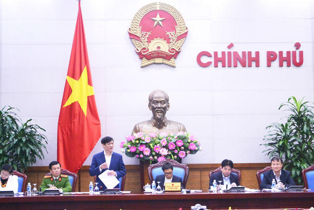| Thứ trưởng Bộ Y tế Nguyễn Thanh Long báo cáo Kết quả công tác của Ban chỉ đạo với Phó Thủ tướng và các thành viên tại cuộc họp |