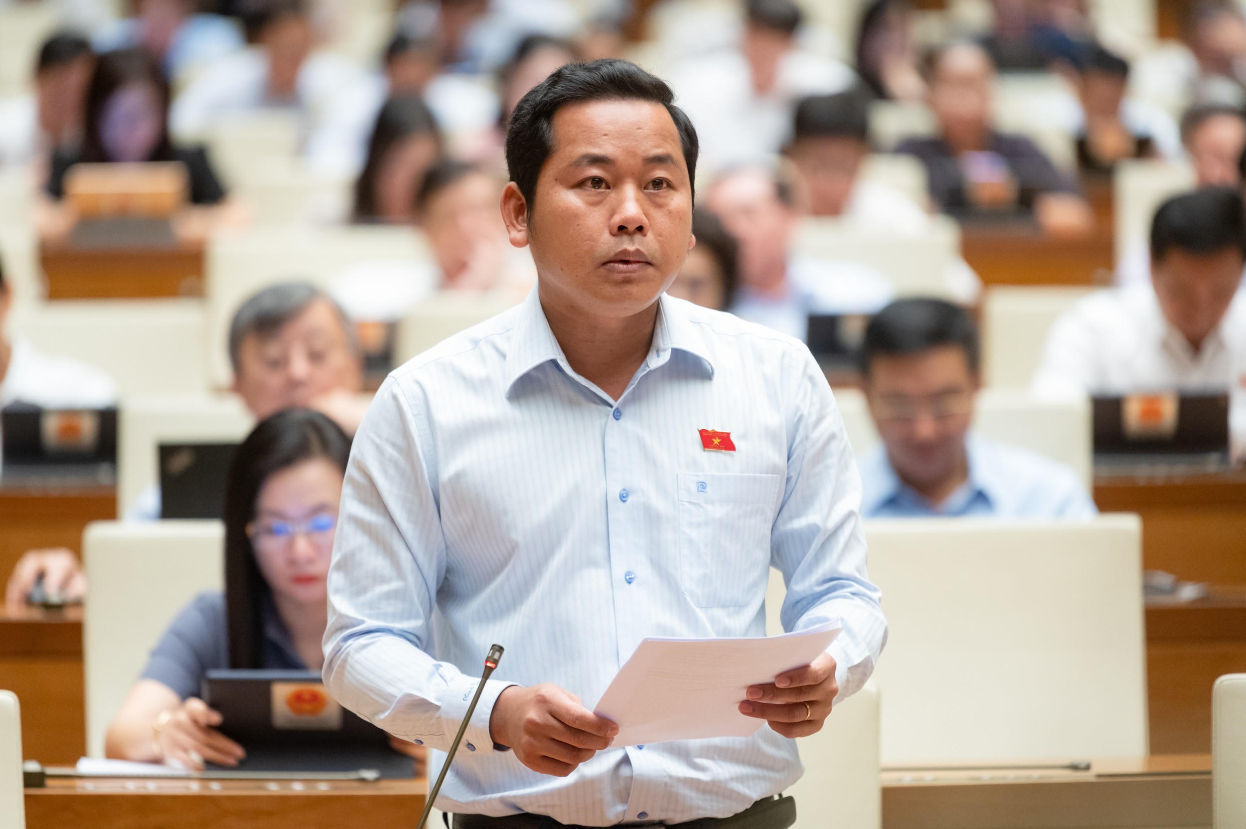 Đại biểu Dương Tấn Quân phát biểu tại phiên họp. |