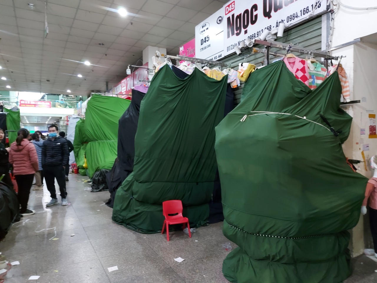 Điều bất ngờ, ngay khi lực lượng QLTT vừa đặt chân đến địa điểm này, các cửa hàng kiot đồng loạt đóng cửa, quây hàng. Từng tốp người ngồi tụ tập một chỗ để nghe ngóng việc kiểm tra của lực lượng QLTT.