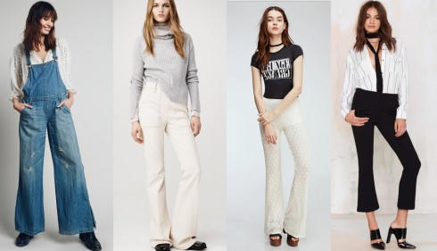 Quần loe xuất hiện dày đặc trong lookbook của các thương hiệu bình dân Mango, Nasty Gal, Topshop, Free People…