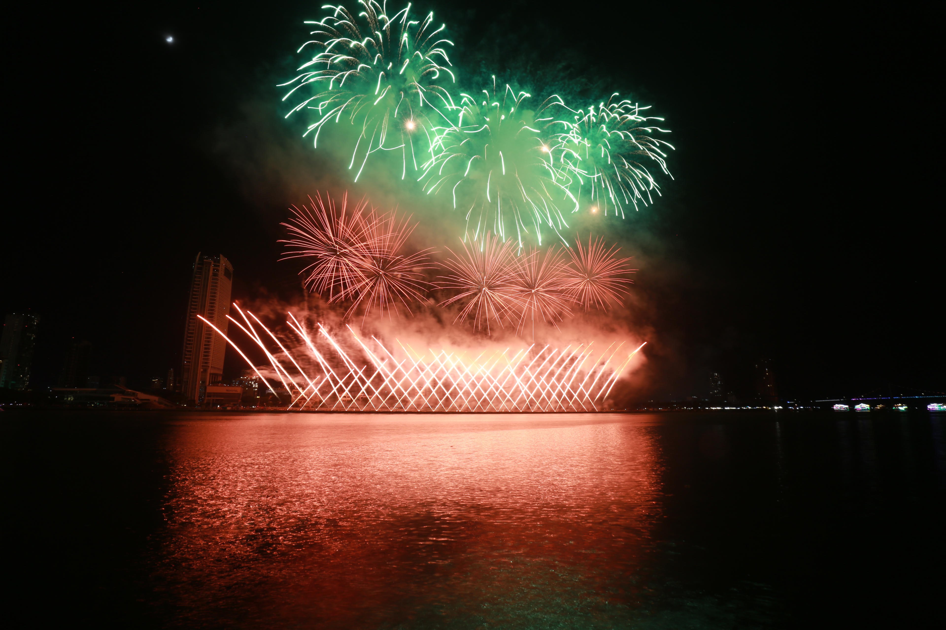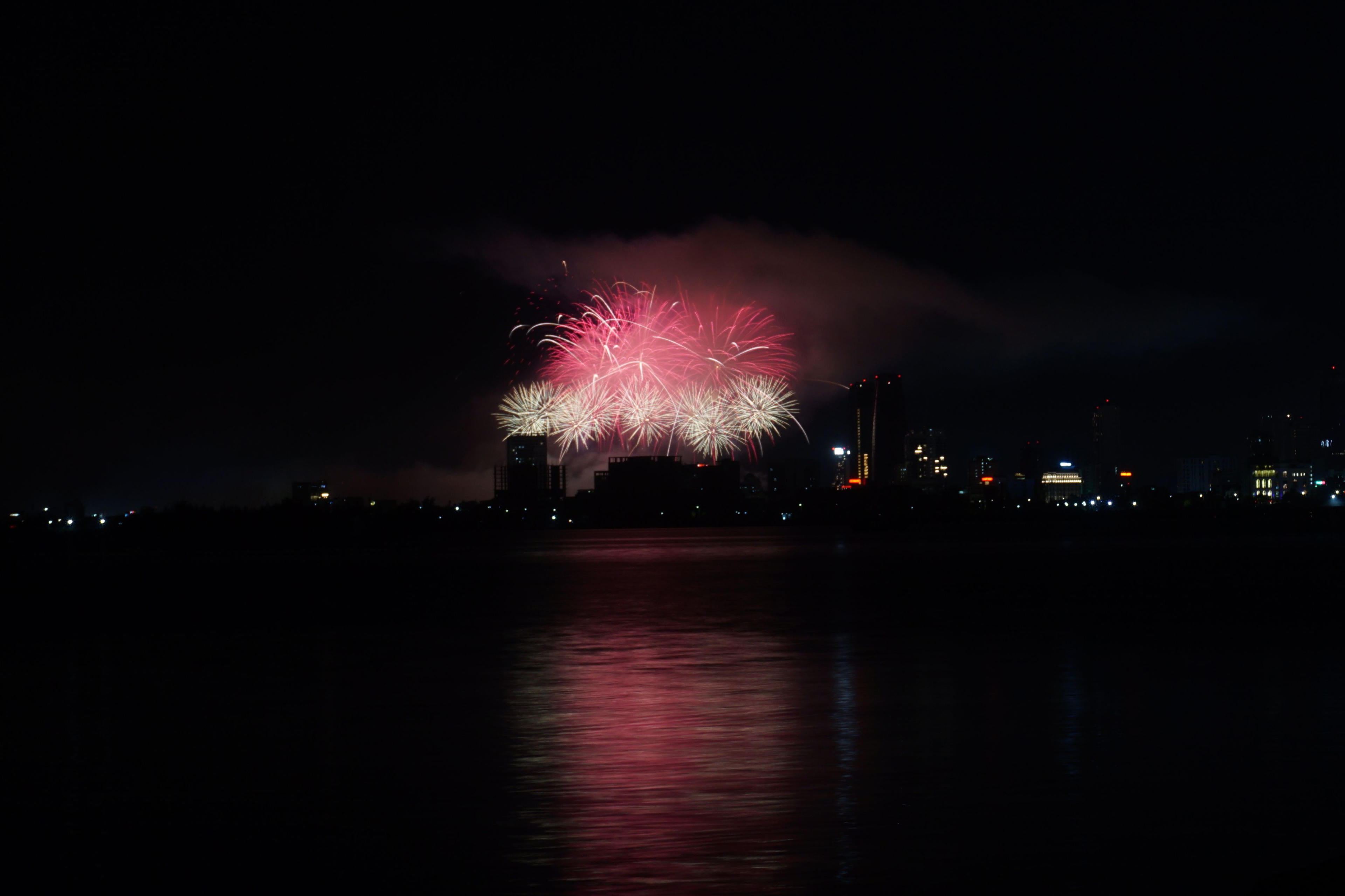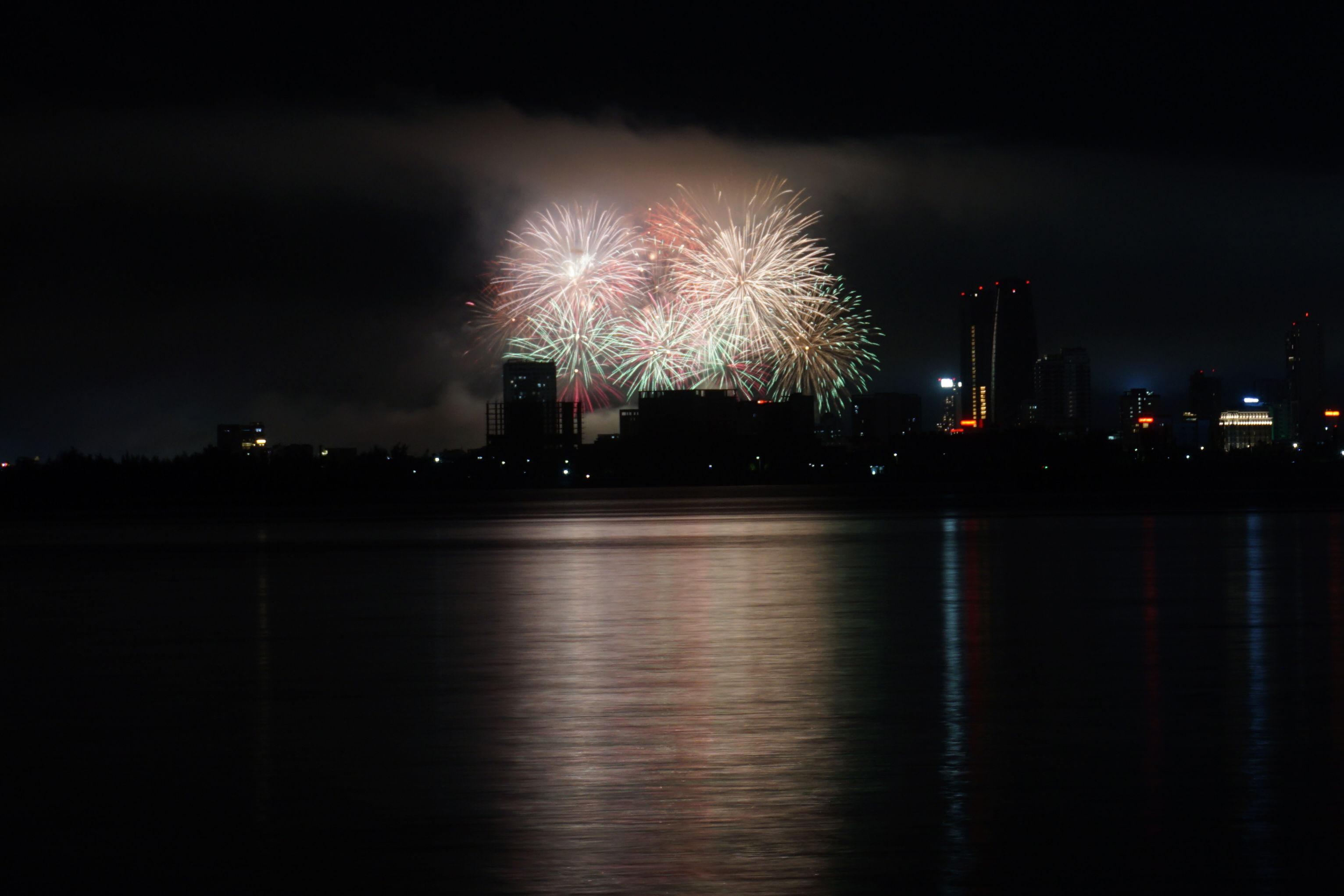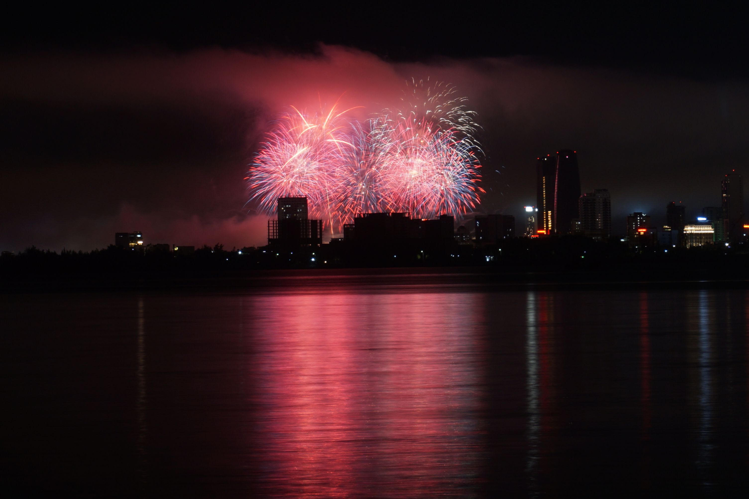 Góc pháo hoa của đội Trung Quốc nhìn từ bờ biển đường Nguyễn Tất Thành. |