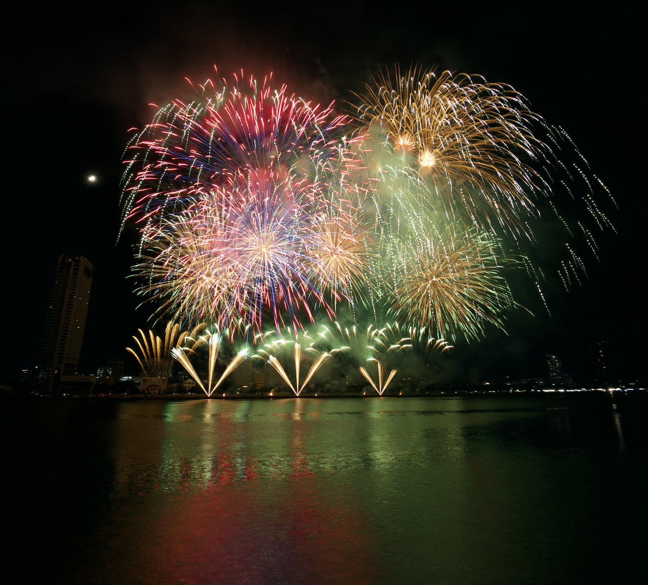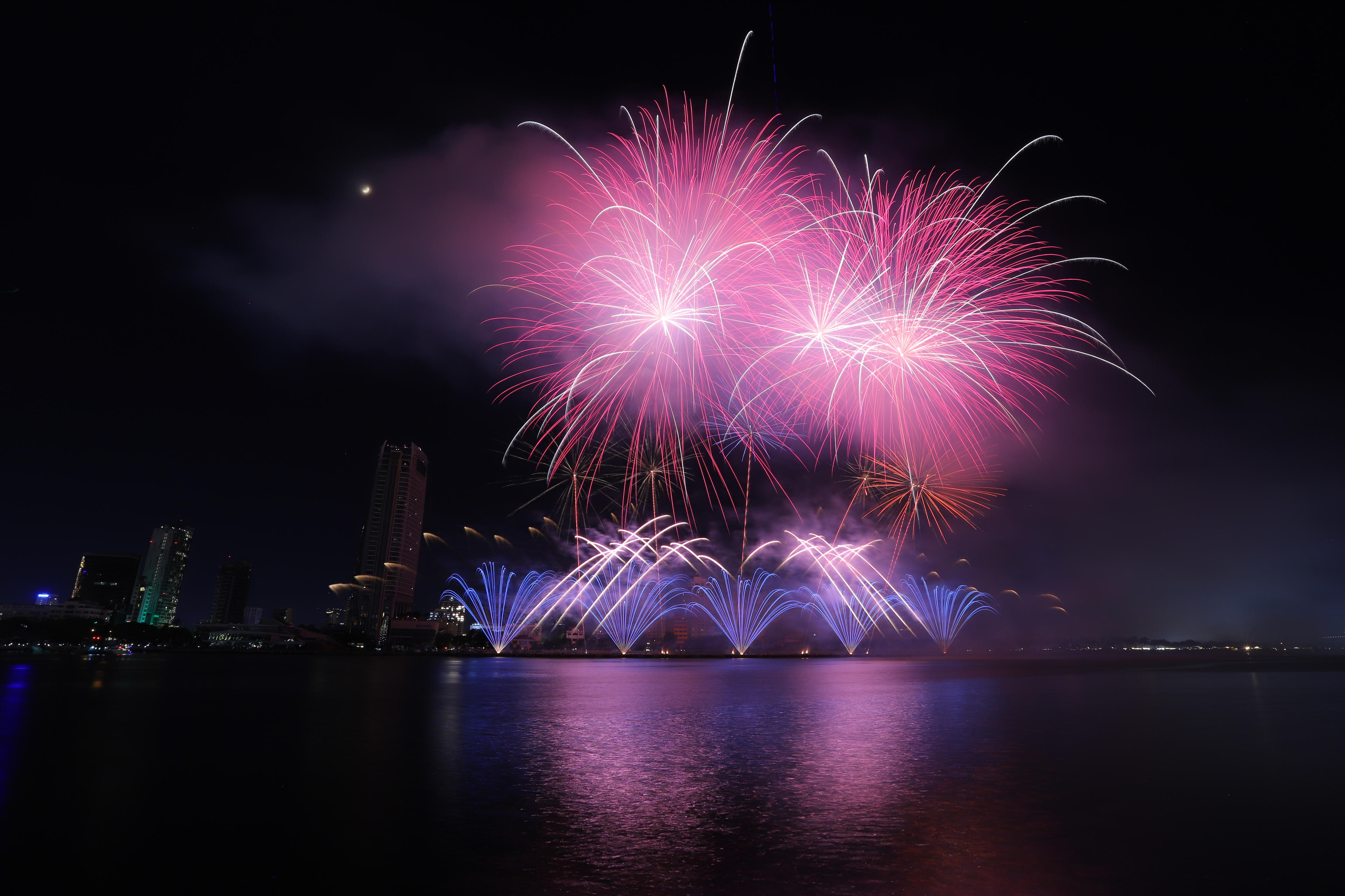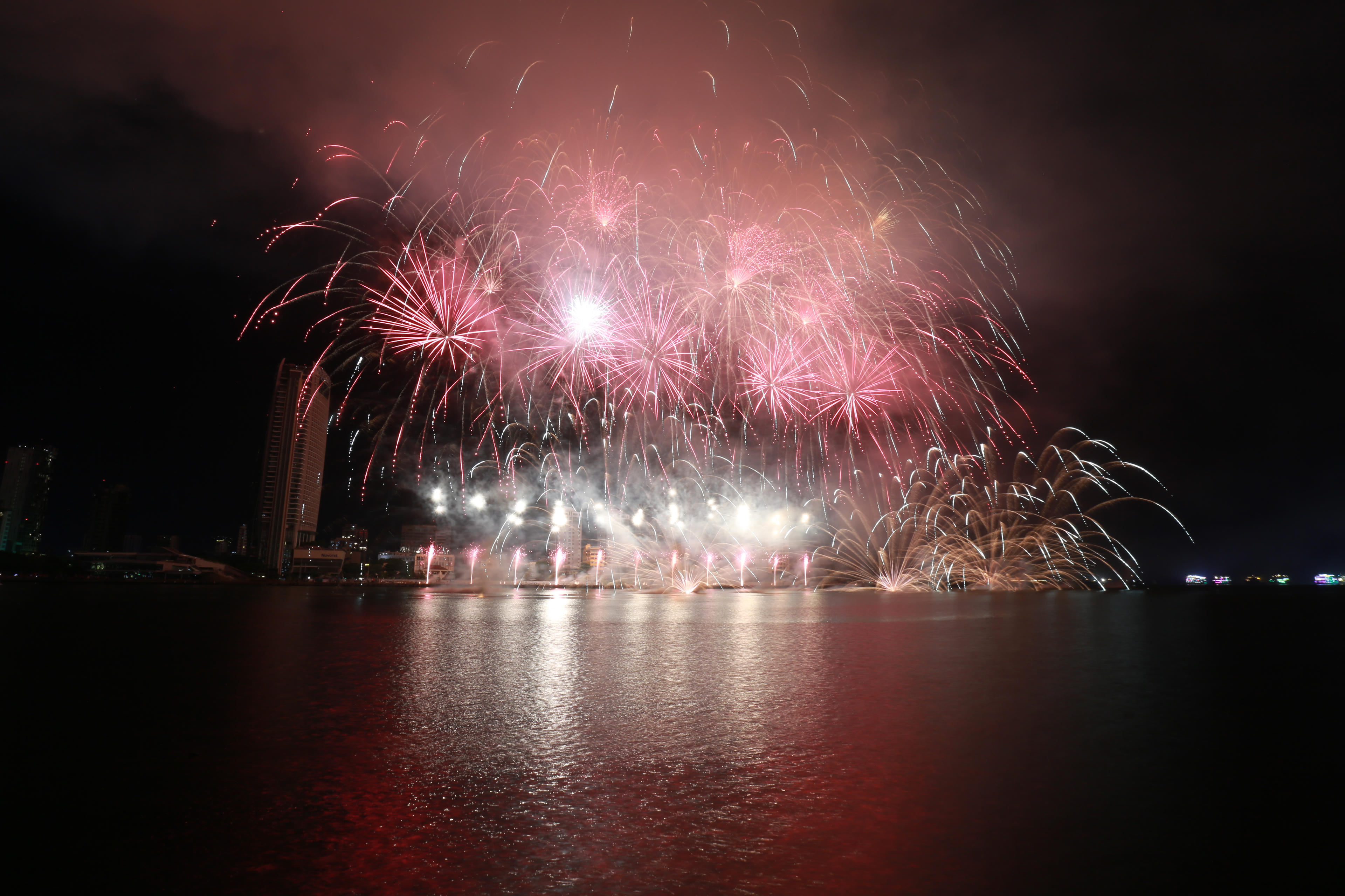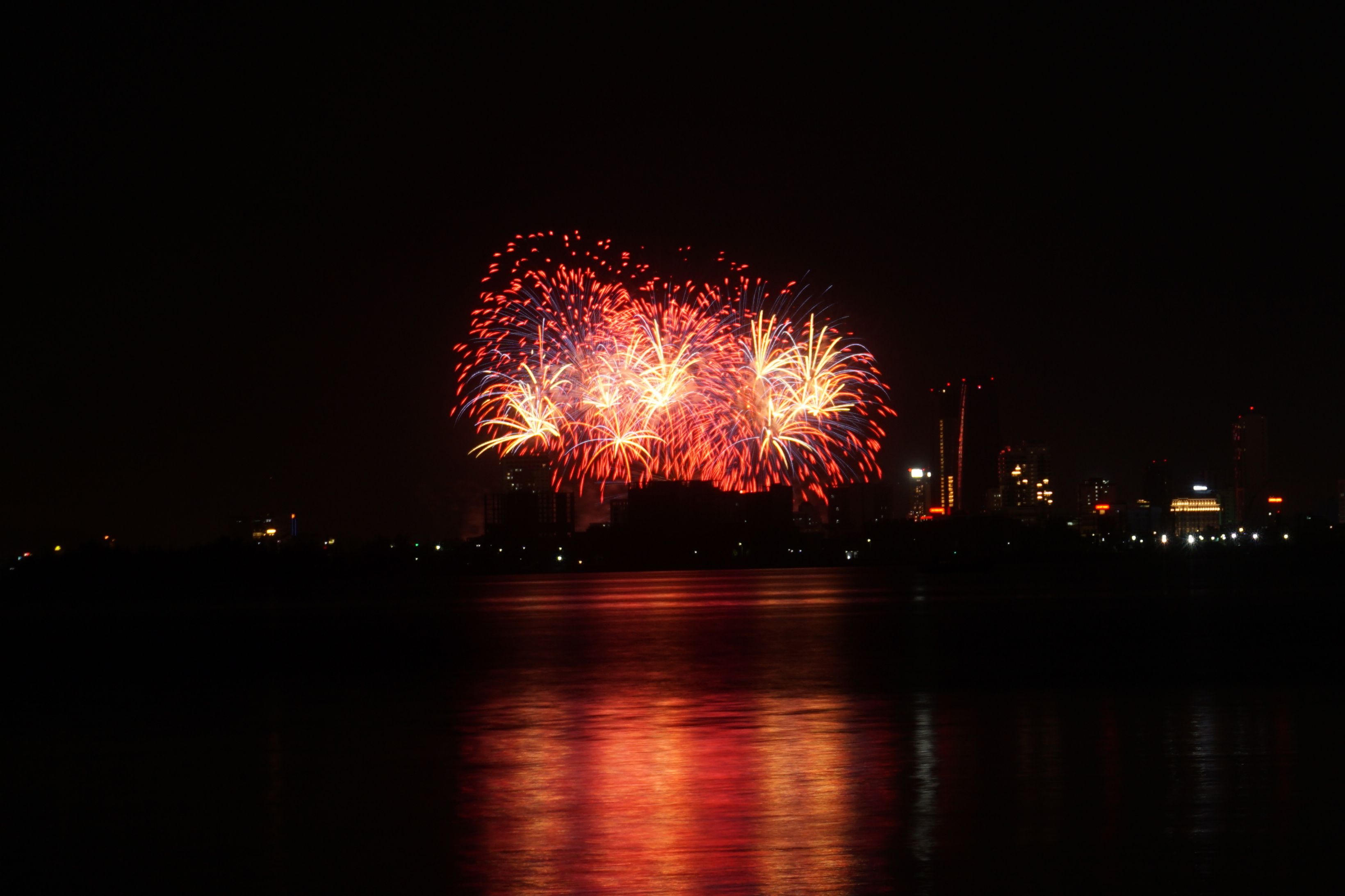 Góc pháo hoa của đội Trung Quốc nhìn từ bờ biển đường Nguyễn Tất Thành. |