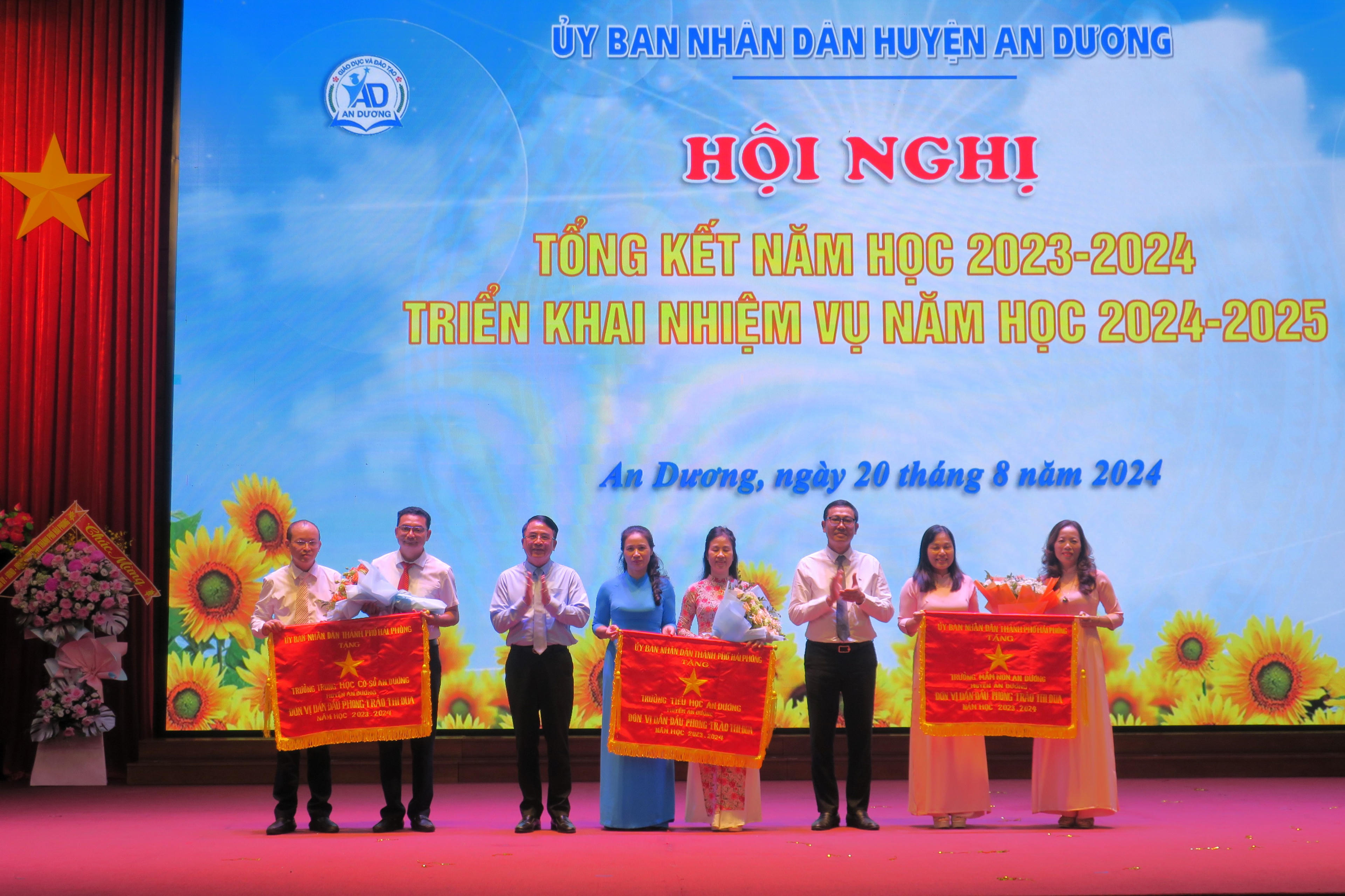 Những thành tích nổi bật của ngành giáo dục huyện An Dương trong năm học vừa qua đã được ghi nhận với nhiều phần thưởng. UBND TP tặng Cờ thi đua cho 3 tập thể, danh hiệu tập thể lao động xuất sắc cho 20 đơn vị, cùng với Bằng khen cho 9 tập thể và 18 cá nhân. UBND huyện cũng đã công nhận 57 tập thể lao động tiên tiến, 496 chiến sĩ thi đua cơ sở và 2.331 lao động tiên tiến, cùng với nhiều giấy khen cho tập thể, giáo viên, học sinh có thành tích xuất sắc.